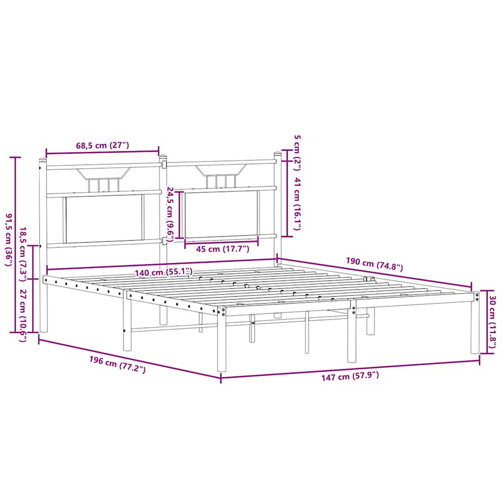 Get a better restful night's sleep from this bed frame! It makes a welcoming addition to any bedroom. Stable and long-lasting frame: Steel is strong, stable, and durable, making it an ideal choice for a wide range of applications, from furniture manufacturing to construction.Versatile headboard: This bedstead comes with a headboard that provides excellent back support when you sit up in bed to read or watch TV, while also serving as a decorative element.Extra storage space: For convenience, the bed base has an extra space underneath to keep your storage boxes out of sight.Slatted base for optimal support: The metal bed frame is equipped with a slatted base for support and breathability for your mattress. Good to know:A mattress is not included with this bed. We do offer a various selection of mattresses. You can check our shop for a matching mattress.