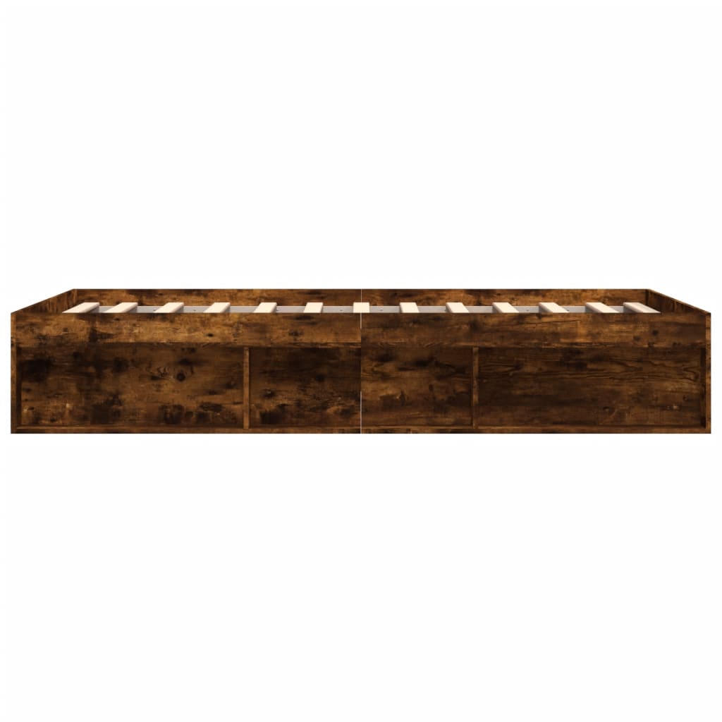 Take the modern route to your bedroom with this bed frame! It will make a practical and decorative addition to your interior. Durable material: The engineered wood is of exceptional quality with smooth surface and also features strength, stability and resistance to moisture.Plywood slats: The plywood slats provide good weight distribution, ensuring that the mattress stays in place with every twist and turn of your body during sleep.Extra storage space: The guest bed has a total of 6 compartments on two sides of the bed to store things like books, potted plants and other decorations. Good to know:A mattress is not included with this bed. We do offer a various selection of mattresses. You can check our shop for a matching mattress.