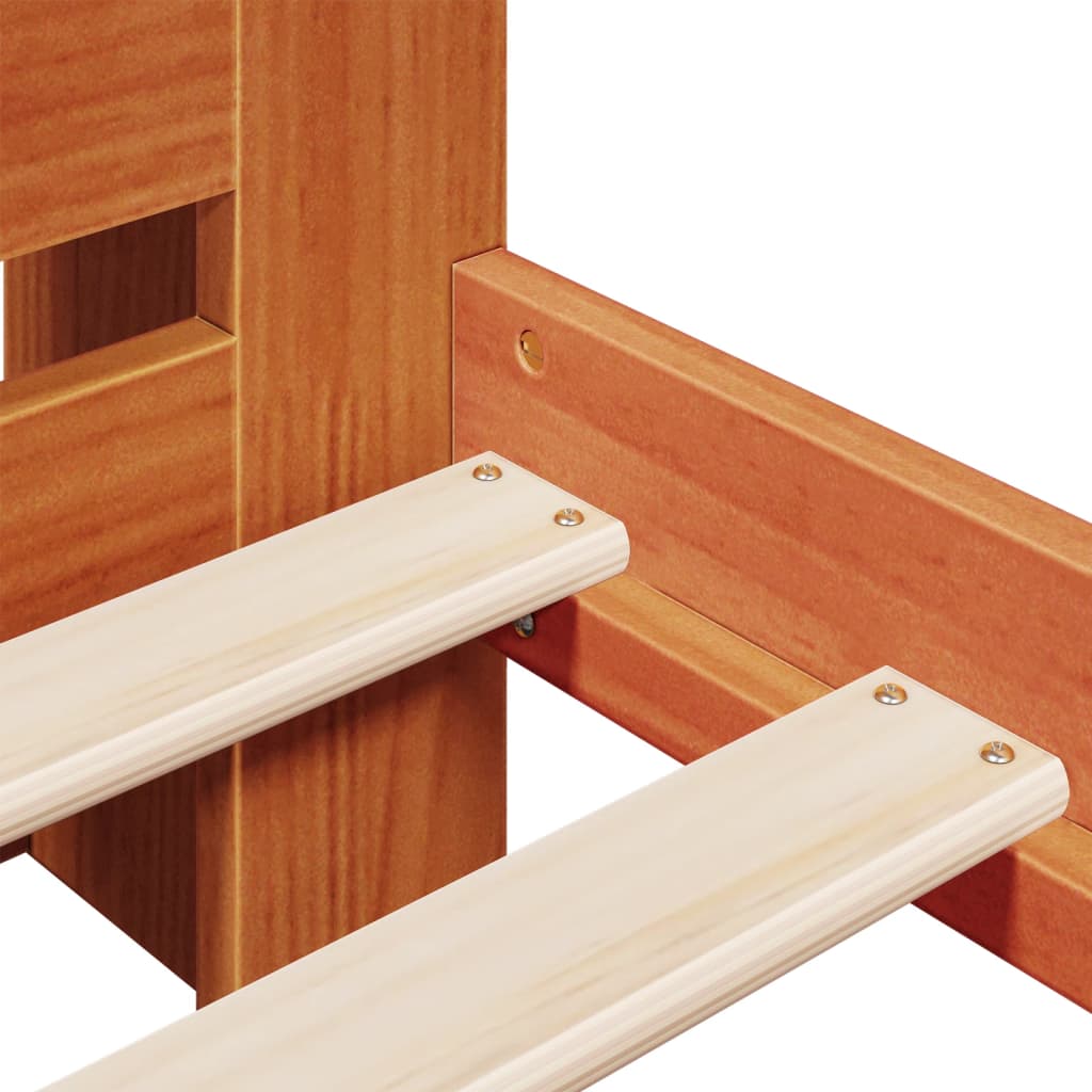 Get a better restful night's sleep from this bookcase bed! It makes a welcoming addition to any bedroom. Stable and long-lasting frame: Solid pinewood is known for its strength and durability. Its straight grains and distinctive knots contribute to its rustic charm.Slatted base for optimal support: The bed frame is equipped with a slatted base for support and breathability for your mattress.Ample storage space: This bookcase headboard offers ample storage space to keep books, decorative items, or personal belongings within easy reach, reducing clutter in the bedroom.Practical footboard: The footboard not only contributes to the overall stability of the bed frame, providing a safe sleeping environment, it also secures your mattress in place and prevents blankets, sheets and other bedding from falling off the end of the bed, maintaining a neat appearance.Space saving: This headboard is a space-saving option that can replace the need for a bedside table, helping maximise your bedroom space, and making it ideal for small or limited spaces. Good to know:A mattress is not included with this bed. We do offer a various selection of mattresses. You can check our shop for a matching mattress.