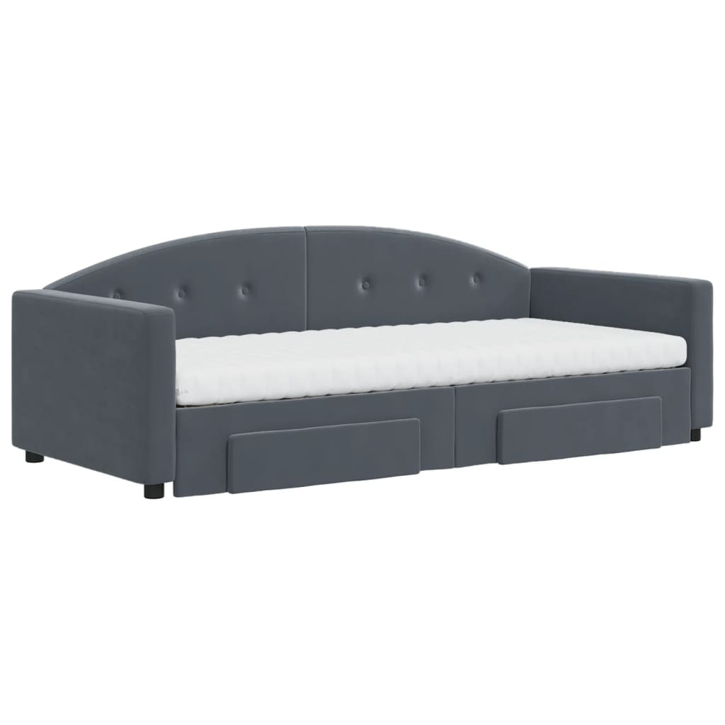 This 2-in-1 daybed with trundle, serving as both a sofa and bed, makes a practical and eye-catching addition to your living room or bedroom. Versatile daybed: The sofa bed functions as a sofa during the day and easily converts into a double bed at night by pulling out the trundle, providing a convenient solution for hosting guests and maximising space. Ample storage space: This guest bed has two drawers with wheels that provide ample space for storing your clothes, socks, toys, cushions, etc. Comfortable foam mattress: This sleeper bed is supplied with two foam mattresses for maximum support and optimum comfort. Soft velvet and solid construction: This day bed sofa has a sturdy frame made of wood and metal and is upholstered in soft and comfortable velvet.