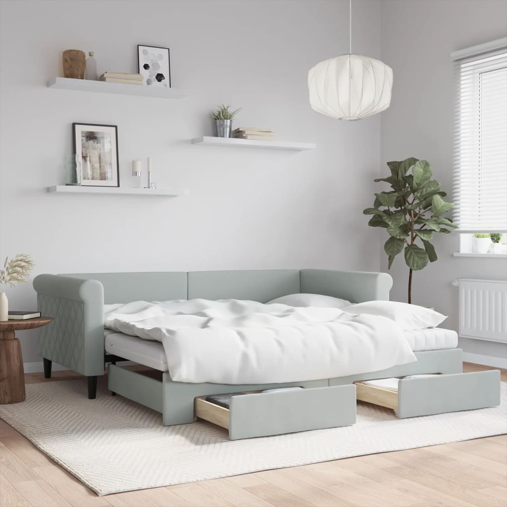 Daybed with Trundle and Drawers Light Grey 90x190 cm Velvet – Modernique