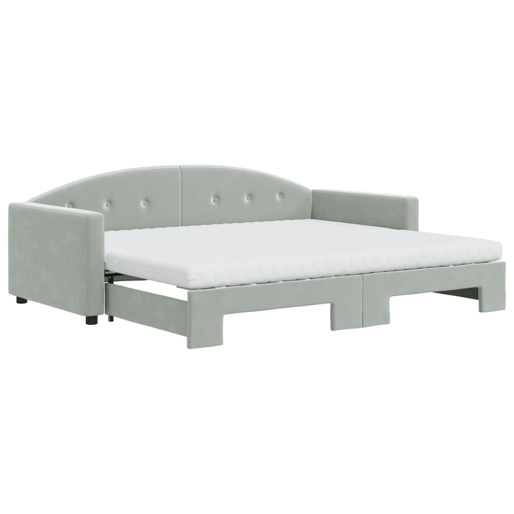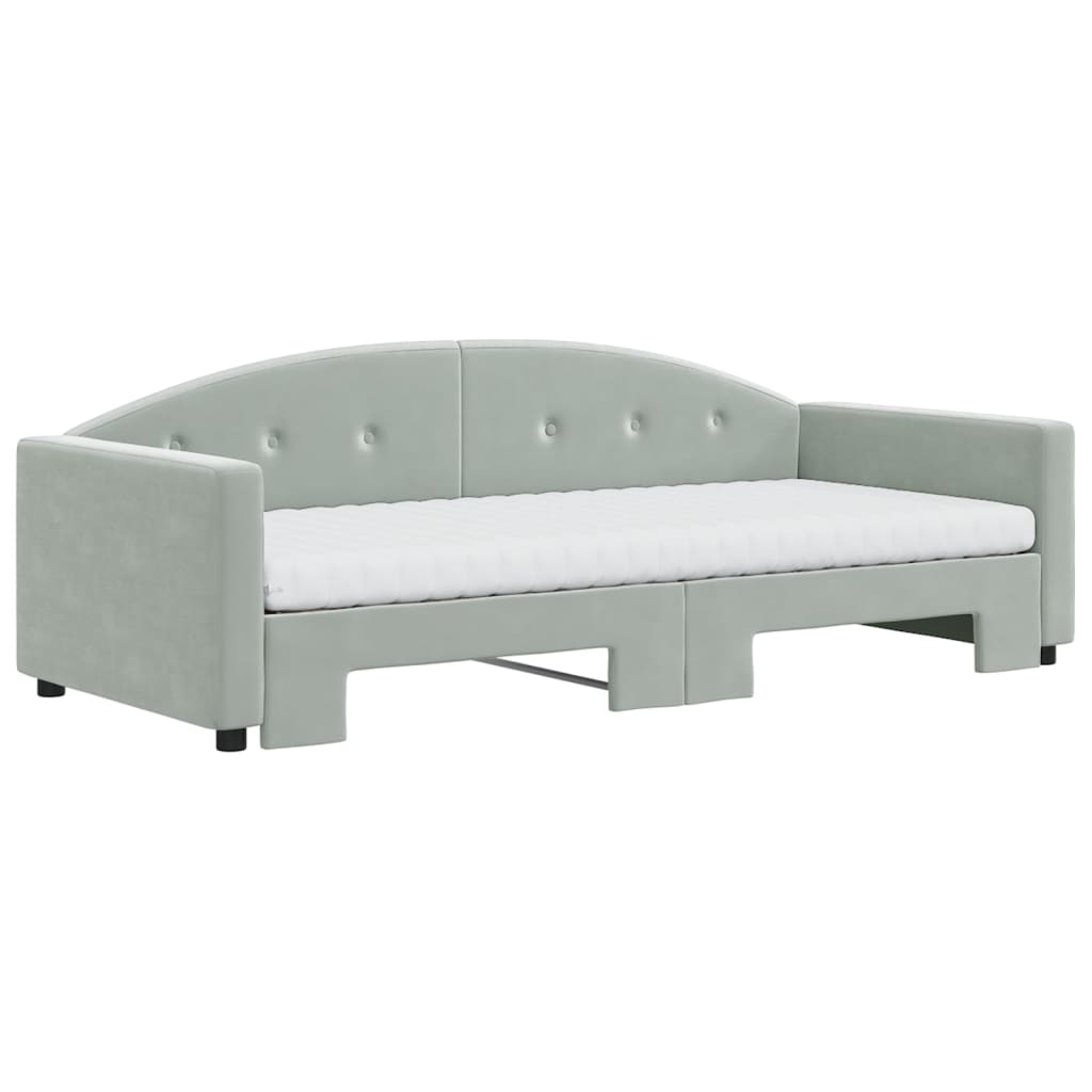 Daybed with Trundle and Mattresses Light Grey 90x190 cm Velvet – Modernique