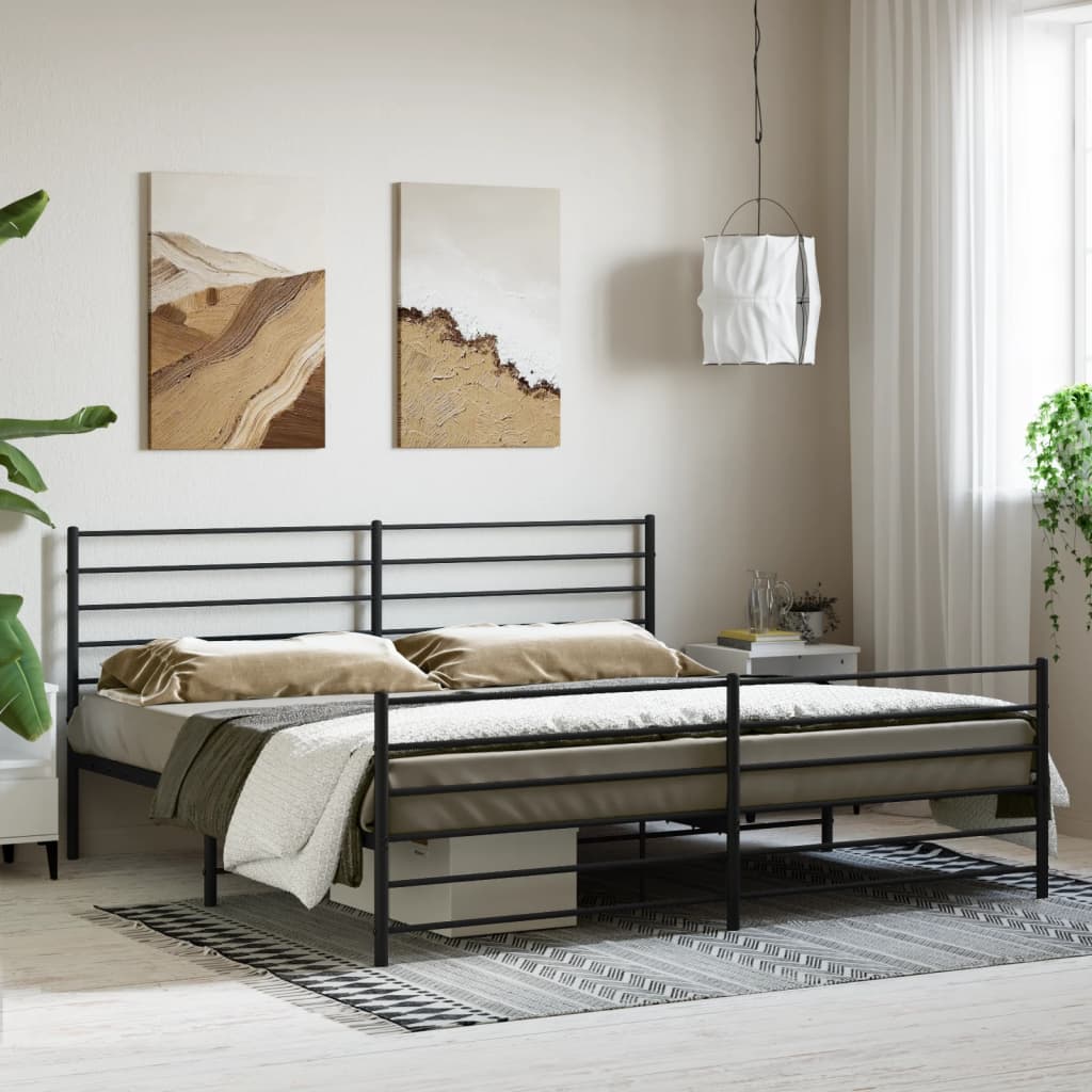 Metal Bed Frame with Headboard and Footboard Black 183x213 cm – Modernique