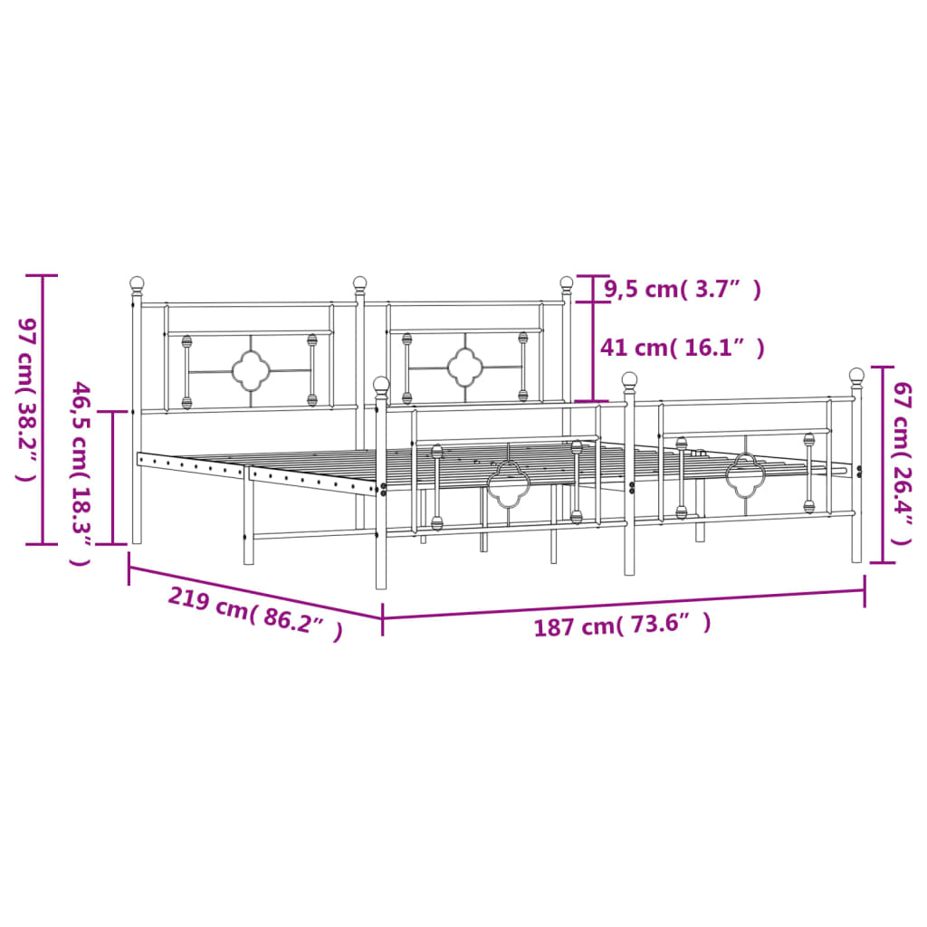 Metal Bed Frame without Mattress with Footboard White 183x213cm – Modernique