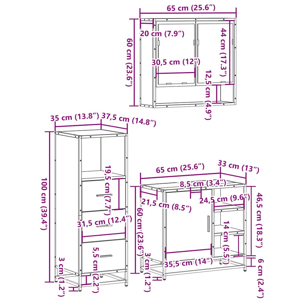 This stylish bathroom furniture set is an excellent addition to your bathroom, giving it a tidy and striking appearance! Stable and durable material: Engineered wood is a durable and stable material with a smooth surface that is resistant to moisture, warping, and splitting, making it a reliable choice for a variety of projects.Stable and long-lasting frame: The metal frame of the bathroom vanity unit enhances your interior with an industrial style and provides exceptional durability, stability and resistance to corrosion.Ample storage space: The bath cabinet offers ample space to easily accommodate your essential toiletries and bath items such as soaps, shampoo, toothpaste, etc.Clear image: The glass mirror face provides a fine and non-distorted reflection, so it is suitable for making up, shaving or checking the suit before going out.Easy to maintain: Thanks to its smooth surface, the bathroom cabinet is easy to clean with a damp cloth and requires less maintenance. Good to know:Screws and plugs for inside the wall are not included. We advise to find and use screws and plugs suitable specifically for your walls. If you're not sure, you can consult with a professional. Please read and follow each step of the instructions. Warning:To prevent it from tipping over, this product must be used with the provided wall attachment device.