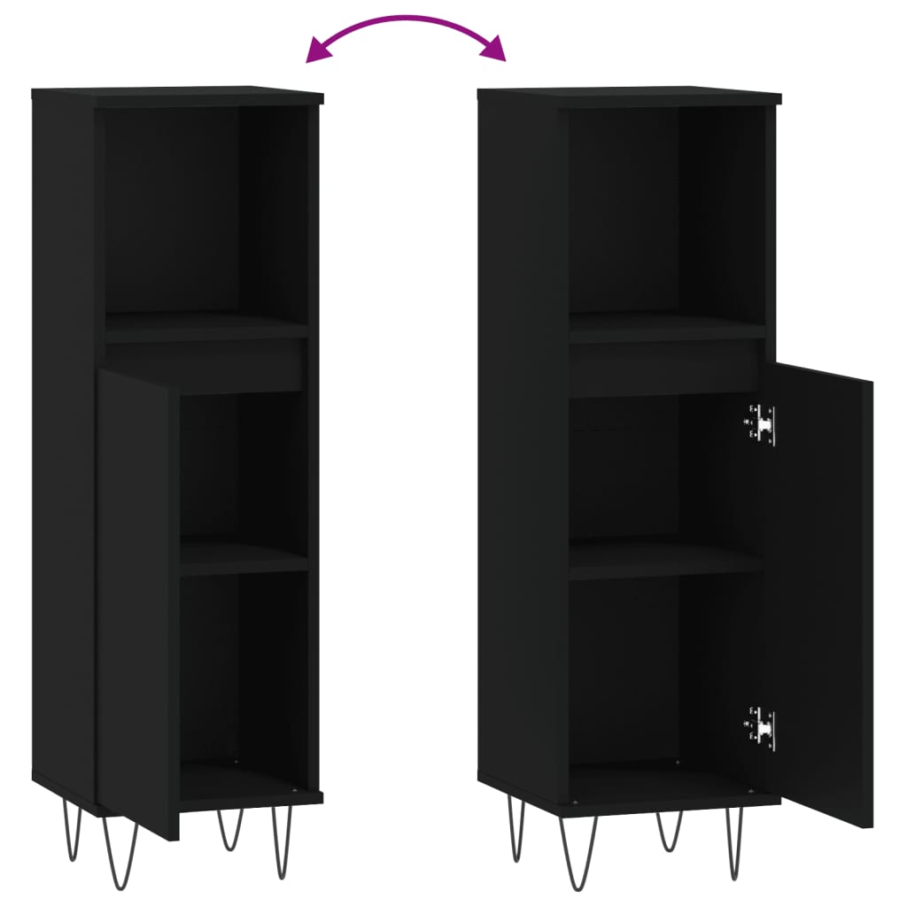 This bathroom cabinet is meant to be a great addition to your bathroom, giving it a tidy and striking appearance! Durable material: The engineered wood is of exceptional quality with smooth surface and also features strength, stability, and resistance to moisture.Ample storage space: The bathroom furniture has 2 compartments with door and 1 open shelf, offering various storage options and extra space to store items in your bathroom.Flexible door installation: You can install the door either on the left or right side based on your own needs.Iron feet: The iron feet add an industrial style to your interior while ensuring the stability of the bathroom storage cabinet. Warning:To prevent it being overturned, this product must be used with the provided wall attachment device.
