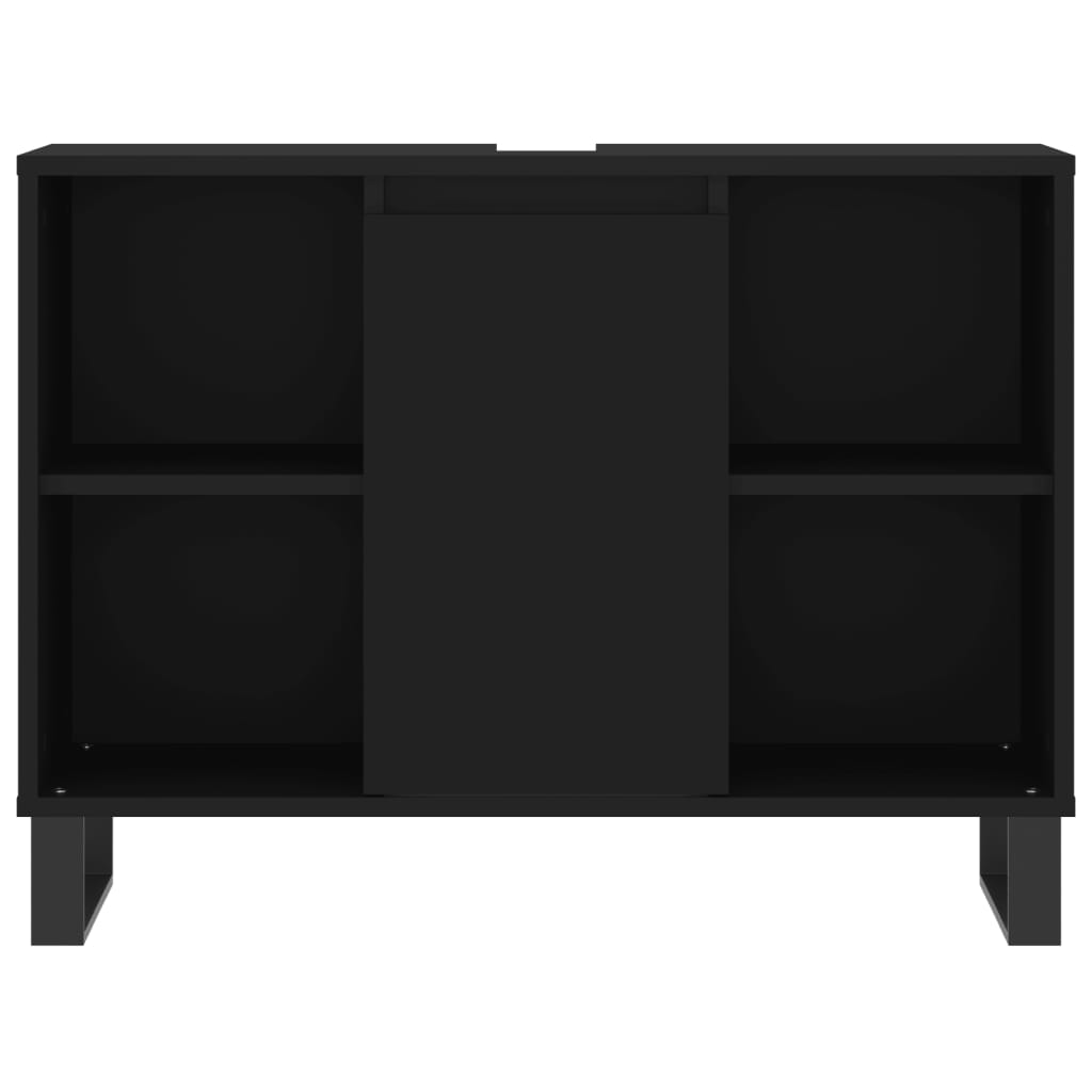 This bathroom cabinet is meant to be a great addition to your bathroom, giving it a tidy and striking appearance! Durable material: The engineered wood is of exceptional quality with smooth surface and also features strength, stability, and resistance to moisture.Ample storage space: The bathroom furniture has 1 compartment with door and 4 shelves, offering various storage options and extra space to store items in your bathroom.Flexible door installation: You can install the door either on the left or right side based on your own needs.Iron feet: The iron feet add an industrial style to your interior while ensuring the stability of the bathroom storage cabinet. Warning:To prevent it being overturned, this product must be used with the provided wall attachment device.