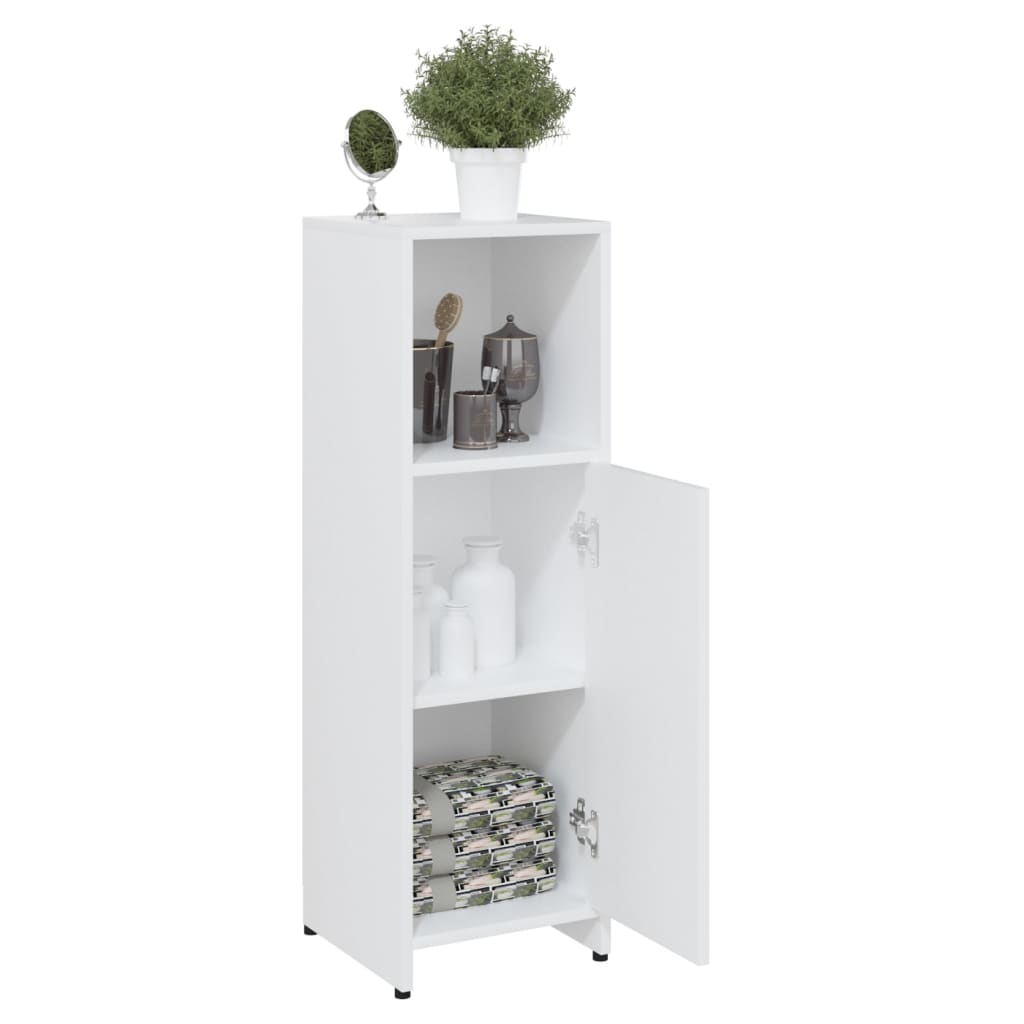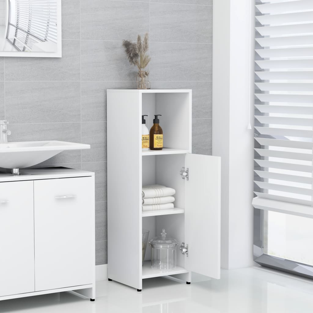 With this bathroom cabinet, you can create additional storage space for your bathroom with a striking, tidy appearance. The clean lines and sleek design blend into your bathroom perfectly. This chic cabinet is made of board, making it sturdy and stable. The laundry room rack has 3 compartments and 1 door, offering various storage options and extra space to store items in your bathroom. There is a handle on door for better opening and closing. The cupboard is easy to clean with a damp cloth.