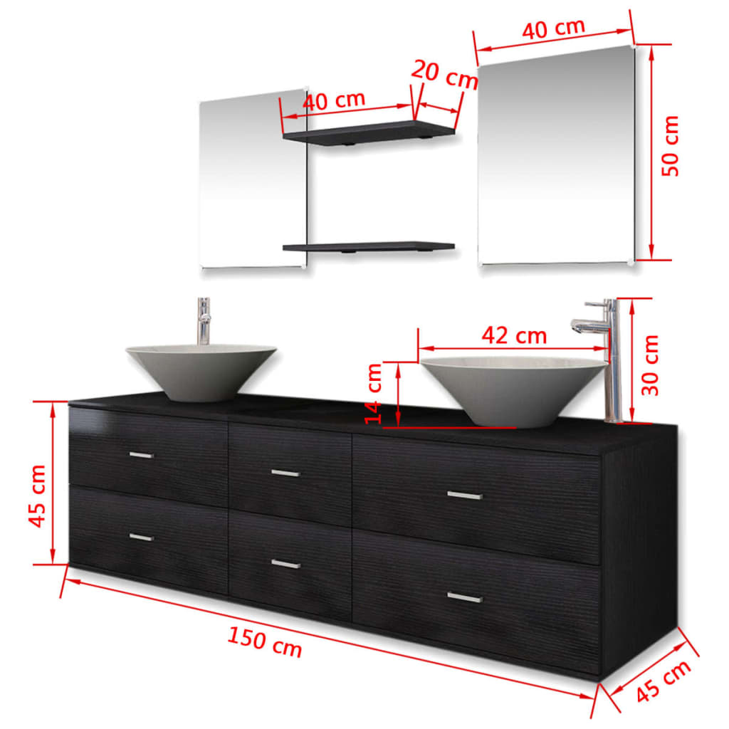 - Basin cabinet dimensions: 150 x 45 x 45 cm (L x W x H)