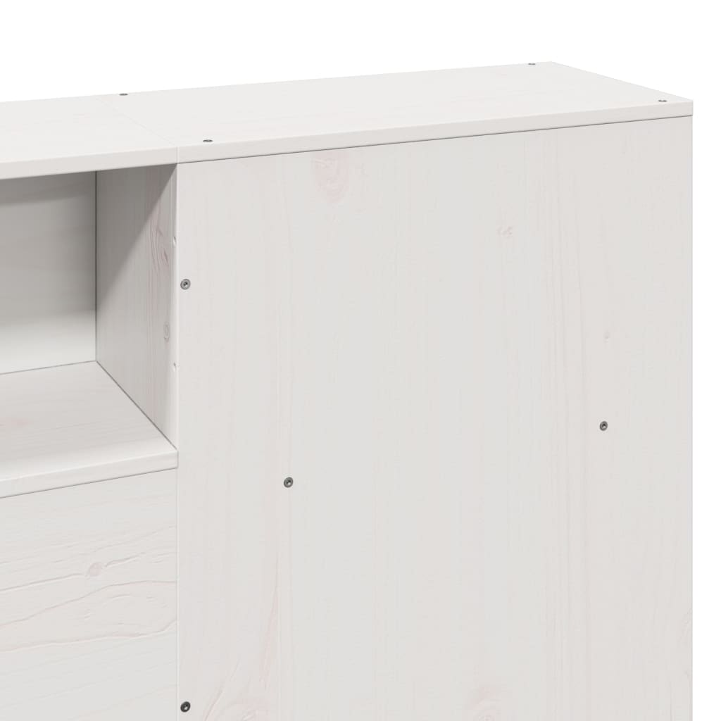 Get a better restful night's sleep from this bed frame! It makes a welcoming addition to any bedroom. Stable and long-lasting frame: Solid pinewood is known for its strength and durability. Its straight grains and distinctive knots contribute to its rustic charm.Make full use of space: With 7 convenient compartments, this headboard is a space-saving option that can replace the need for a bedside table, helping maximise your bedroom space, and making it ideal for small or limited spaces.Versatile headboard: This bed frame comes with a headboard that provides excellent back support when you sit up in bed to read or watch TV, while also serving as a decorative element.Slatted base for optimal support: The bed frame is equipped with a slatted base for support and breathability for your mattress. Good to know:A mattress is not included with this bed. We do offer a various selection of mattresses. You can check our shop for a matching mattress.