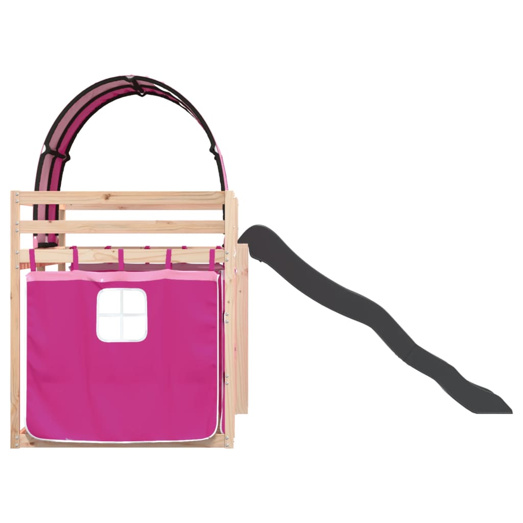 This wooden bunk bed is elegant and functional, making it a perfect addition to any room with limited space. Solid pine wood: This bunk bed is made of solid pine wood for stability and durability. Pine wood has a straight grain, and the knots give the material its signature, rustic look.Great fun: You can combine the curtains with the low bunk bed to create your child's secret base, providing great fun at bedtime and adding a focal point to the bedroom!Safety guardrails: The top bunk comes with safety guardrails on all 4 sides, so your child can sleep without worrying about falling off.Convenient ladder and slide: This double bunk bed has a fun slide that brings joy and turns their room into an indoor playground. The combination of a climbing ladder and slide makes bedtime livelier and more interesting for children.Sturdy slats: The plywood slats provide good weight distribution, ensuring that the mattress stays in place with every twist and turn of your body during sleep. Good to know:A mattress is not included with this bed. We do offer a various selection of mattresses. You can check our shop for a matching mattress. Warning:To prevent it from tipping over, this product must be used with the provided wall attachment device.