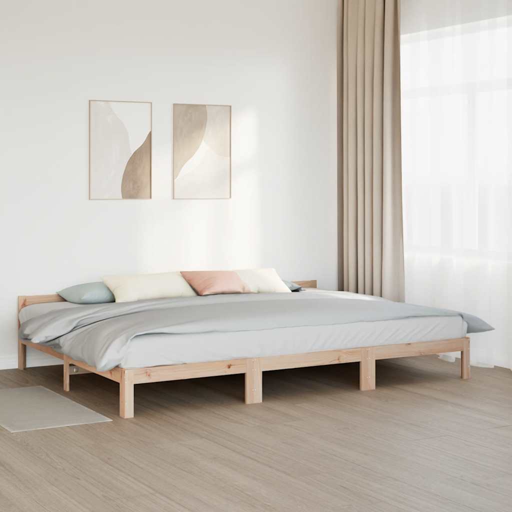 Get a better restful night's sleep from this wooden family bed frame! It makes a welcoming addition to any bedroom. Stable and long-lasting frame: Solid pinewood is known for its strength and durability. Its straight grains and distinctive knots contribute to its rustic charm.No box spring required: The bed frame includes a slatted base that provides excellent support and breathability for your mattress, eliminating the need for a box spring.Spacious comfort: This family bed offers a spacious 270x200 cm sleeping area, ensuring ample space for the whole family to sleep comfortably without feeling cramped. In addition, you can add more single beds to create a larger sleeping space thanks to the pre-drilled holes in the bed frame.Versatile headboard: This bed frame comes with a headboard that provides excellent back support when you sit up in bed to read or watch TV, while also serving as a decorative element.Stable and durable feet: This bed is supported by sturdy feet, ensuring stability, safety, and firmness.