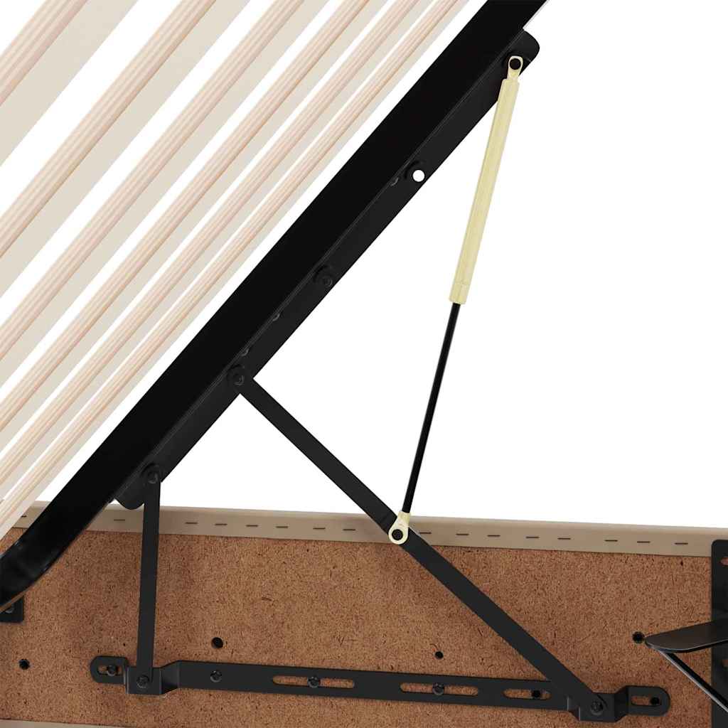 This modern storage bed effortlessly combines style and functionality, making it a centerpiece in any bedroom. Its sleek, minimalist design is characterized by clean lines and understated ornamentation, seamlessly fitting into contemporary living spaces. Crafted with a luxurious faux leather finish, this bed offers an exquisite touch of sophistication, while providing ample storage space beneath the mattress. The hydraulic lift system ensures easy access to the storage area, perfect for keeping bedding and personal belongings out of sight, enhancing the room's overall tidiness and elegance. Faux Leather Finish The bed is enveloped in high-quality faux leather, providing a luxurious look and feel. This abrasion-resistant material is not only durable but also easy to maintain, suitable for dry cleaning with a cloth. Hydraulic Lift Storage The innovative hydraulic lift system allows the mattress to be easily lifted, revealing spacious storage underneath. Perfect for keeping seasonal clothing, bedding, or other items neatly tucked away. Durable Frame The sturdy metal frame ensures long-lasting stability, supporting the mattress without creaks or instability. Designed to withstand everyday use, it promises reliability over time. Modern Aesthetic The storage bed's simple geometry is complemented by square pulls on the headboard, creating a cohesive and refined look. The minimalist design caters to modern aesthetics, making it a versatile addition to any bedroom. Easy Maintenance Daily upkeep is simplified with the use of a dry cloth for cleaning, ensuring the bed remains looking pristine with minimal effort.