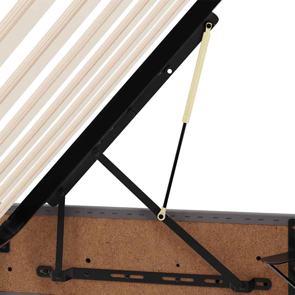 This modern storage bed effortlessly combines style and functionality, making it a centerpiece in any bedroom. Its sleek, minimalist design is characterized by clean lines and understated ornamentation, seamlessly fitting into contemporary living spaces. Crafted with a luxurious faux leather finish, this bed offers an exquisite touch of sophistication, while providing ample storage space beneath the mattress. The hydraulic lift system ensures easy access to the storage area, perfect for keeping bedding and personal belongings out of sight, enhancing the room's overall tidiness and elegance. Faux Leather Finish The bed is enveloped in high-quality faux leather, providing a luxurious look and feel. This abrasion-resistant material is not only durable but also easy to maintain, suitable for dry cleaning with a cloth. Hydraulic Lift Storage The innovative hydraulic lift system allows the mattress to be easily lifted, revealing spacious storage underneath. Perfect for keeping seasonal clothing, bedding, or other items neatly tucked away. Durable Frame The sturdy metal frame ensures long-lasting stability, supporting the mattress without creaks or instability. Designed to withstand everyday use, it promises reliability over time. Modern Aesthetic The storage bed's simple geometry is complemented by square pulls on the headboard, creating a cohesive and refined look. The minimalist design caters to modern aesthetics, making it a versatile addition to any bedroom. Easy Maintenance Daily upkeep is simplified with the use of a dry cloth for cleaning, ensuring the bed remains looking pristine with minimal effort.