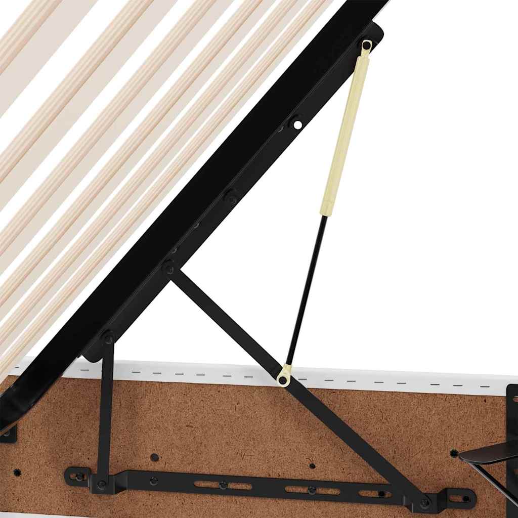 This modern storage bed effortlessly combines style and functionality, making it a centerpiece in any bedroom. Its sleek, minimalist design is characterized by clean lines and understated ornamentation, seamlessly fitting into contemporary living spaces. Crafted with a luxurious faux leather finish, this bed offers an exquisite touch of sophistication, while providing ample storage space beneath the mattress. The hydraulic lift system ensures easy access to the storage area, perfect for keeping bedding and personal belongings out of sight, enhancing the room's overall tidiness and elegance. Faux Leather Finish The bed is enveloped in high-quality faux leather, providing a luxurious look and feel. This abrasion-resistant material is not only durable but also easy to maintain, suitable for dry cleaning with a cloth. Hydraulic Lift Storage The innovative hydraulic lift system allows the mattress to be easily lifted, revealing spacious storage underneath. Perfect for keeping seasonal clothing, bedding, or other items neatly tucked away. Durable Frame The sturdy metal frame ensures long-lasting stability, supporting the mattress without creaks or instability. Designed to withstand everyday use, it promises reliability over time. Modern Aesthetic The storage bed's simple geometry is complemented by square pulls on the headboard, creating a cohesive and refined look. The minimalist design caters to modern aesthetics, making it a versatile addition to any bedroom. Easy Maintenance Daily upkeep is simplified with the use of a dry cloth for cleaning, ensuring the bed remains looking pristine with minimal effort.