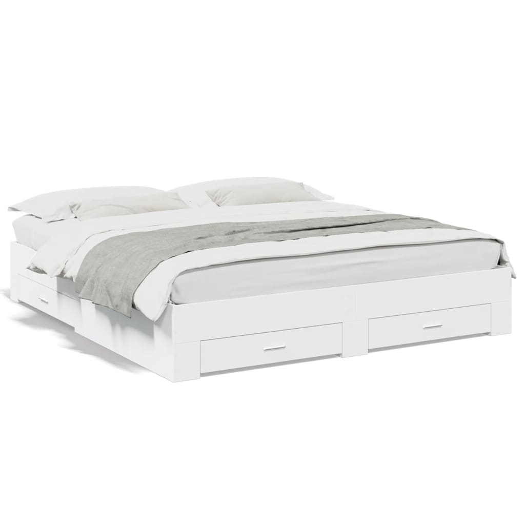 Bed Frame with Drawers White 200x200 cm Engineered Wood – Modernique
