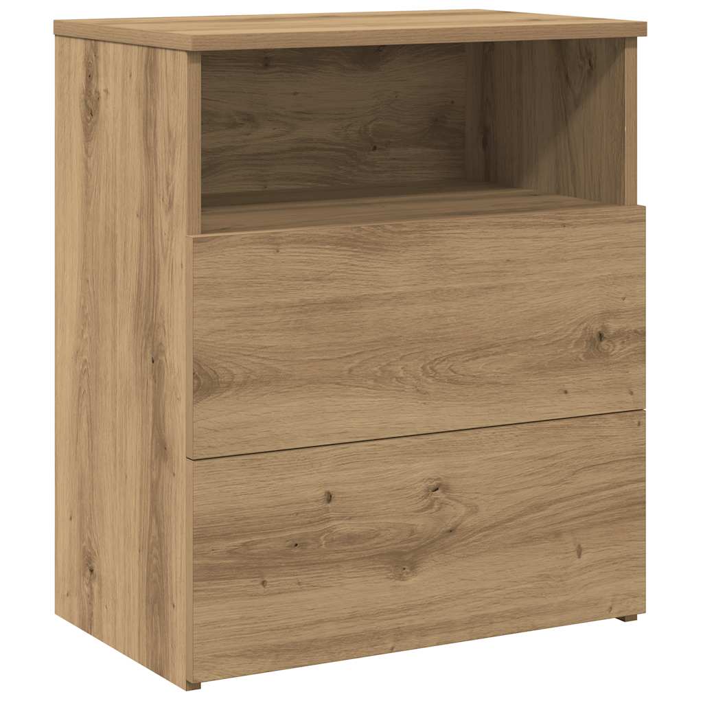 This bedside cabinet with a stylish design makes a timeless addition to your interior decor. Long-lasting material: The engineered wood is of exceptional quality with a smooth surface and also features strength, stability, and resistance to moisture.Ample storage space: The nightstand has 2 drawers and 1 shelf, which offers ample storage space for keeping your various daily essentials well organised and within easy reach.Easy to maintain: Thanks to its smooth surface, the cabinet is easy to clean with a damp cloth and requires less maintenance. Warning:To prevent it from tipping over, this product must be used with the provided wall attachment device.