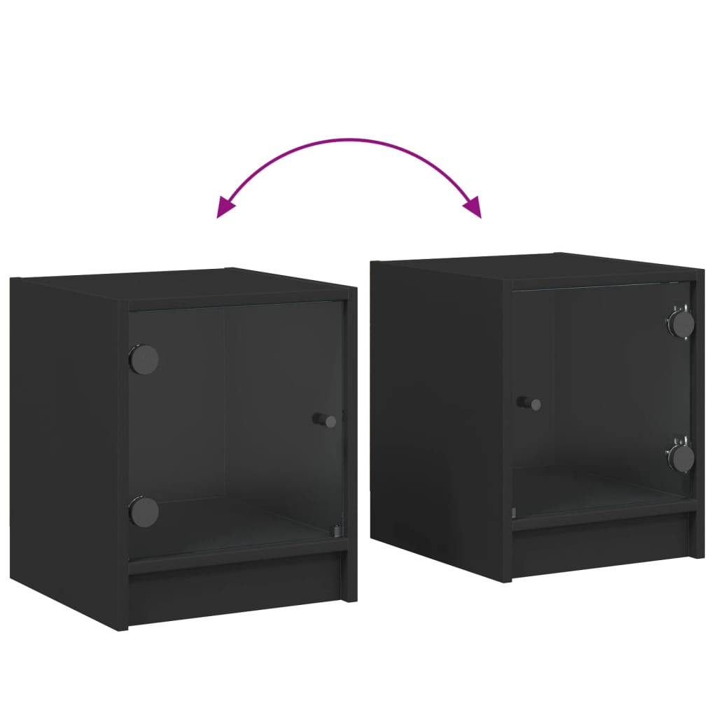 This trendy bedside cabinet featuring an elegant design makes a timeless addition to your interior decor. Durable material: The engineered wood is of exceptional quality with smooth surface and also features strength, stability and resistance to moisture.Ample storage space: The bedside table offers handy storage space for keeping your magazines, remote controls and small items well-organised and within reach.Stable top: The side cabinet features a stable top that can be used to place table lamps, books, etc.Practical glass door: Keep your space clutter-free by hiding small essentials behind the door of the bedroom furniture. In addition, the glass door allows you to see inside the bed side cabinet to display items beautifully.