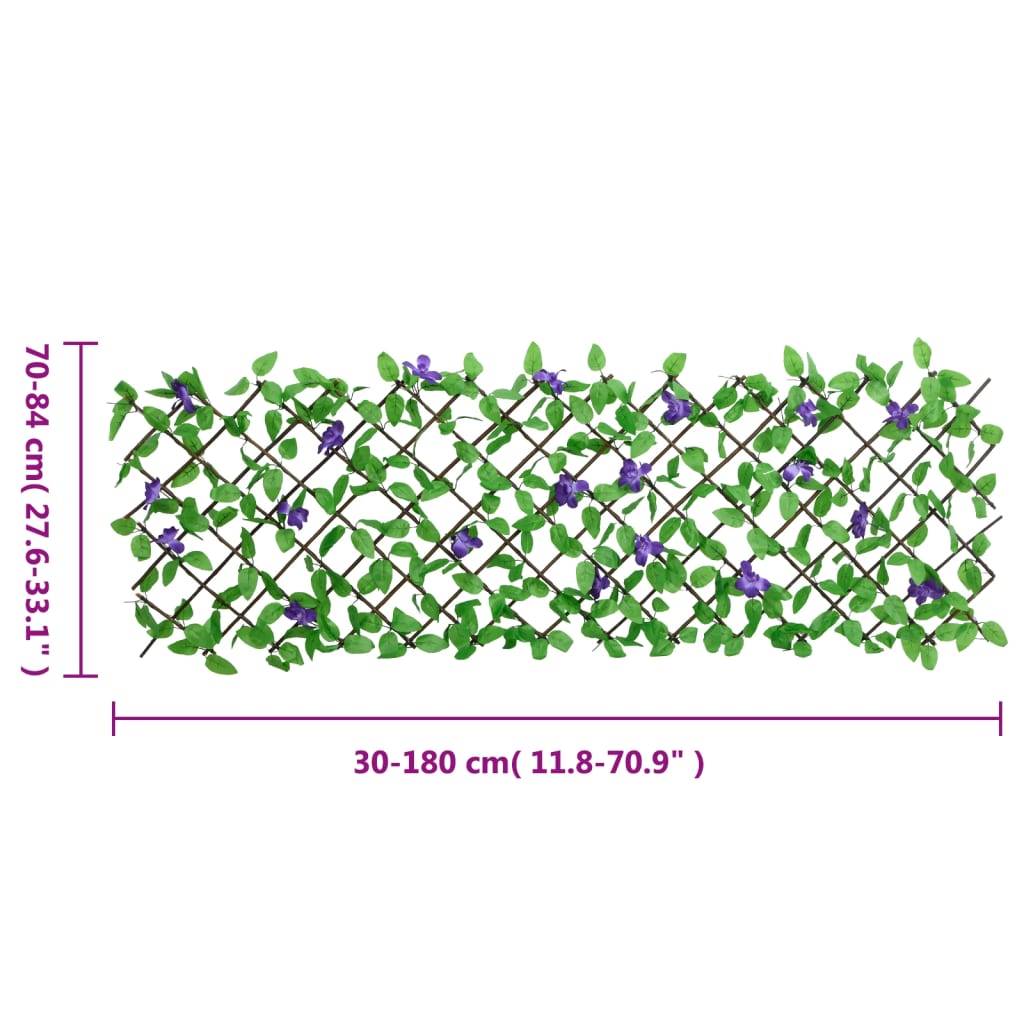 This artificial ivy trellis can be used to decorate garden walls and create a private outdoor space. Privacy and decoration: This artificial ivy screening provides privacy and security for your outdoor space and is a great option for decorating a house as it blocks strong sunlight while allowing air to circulate naturally.Expandable: The expandable fence allows you to adjust the width from 30 cm to 180 cm and the height from 70 cm to 84 cm. You can adjust according to your needs.Sturdy construction: The ivy artificial screening is made of durable wood, making it have a sturdy structure that allows you to use it for a long time.Easy to maintain: The flowers and leaves are made of PVC. look realistic and natural. do not need watering or insect control, and are easy to clean with a water hose.Wide applications: The ivy fence screening is flexible and can be used on any surface. It is perfect for covering walls or other unsightly parts of your garden.