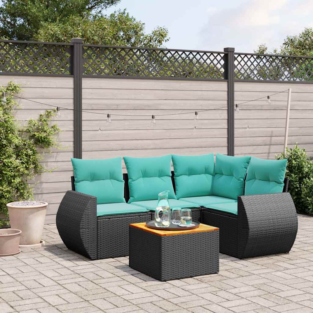 This garden sofa set is the perfect addition to your backyard, terrace, or patio, providing a comfortable and inviting space for chatting with family and friends or simply relaxing and enjoying the outdoors. Durable material: PE rattan, also known as poly rattan, is a strong, low-maintenance synthetic material that looks like natural rattan. It's lightweight, easy to clean, and commonly used for outdoor furniture due to its durability and weather-resistant properties.Stable and easy-to-clean tabletop: This garden table has an acacia wood top that is sturdy, durable, and easy to clean with a damp cloth. Comfortable seat experience: This outdoor furniture, complete with thickly padded cushions, offers a comfortable seating experience.Removable and washable cover: These seat cushions feature removable covers for easy washing and maintenance.Modular design: This outdoor furniture set has a modular design, making it completely flexible and easy to move around, so you can create a customised outdoor furniture arrangement. Good to know:To make sure your outdoor furniture stays beautiful, we recommend protecting it with a waterproof cover.