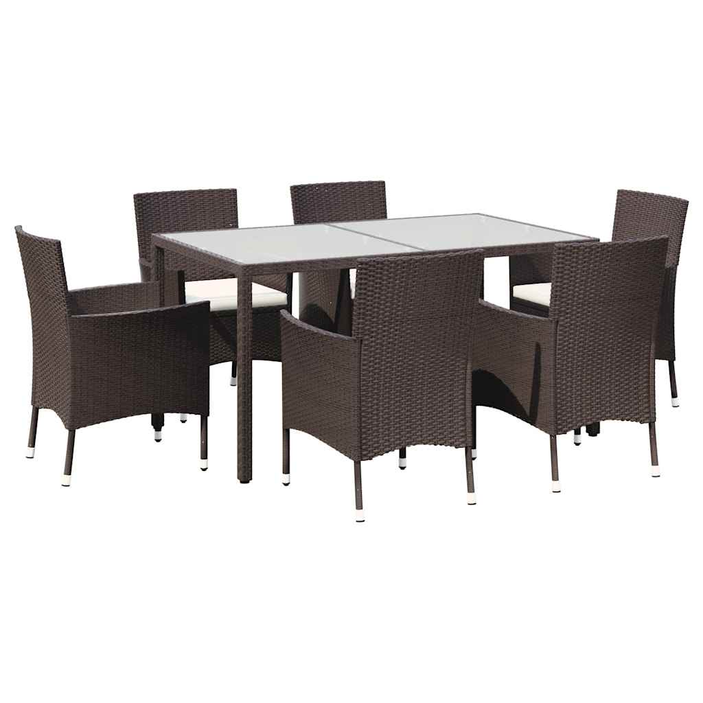 7 Piece Garden Dining Set with Cushions Brown Poly Rattan – Modernique