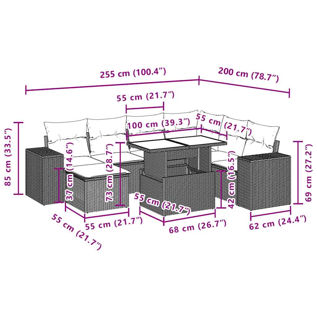 This garden sofa set is the perfect addition to your backyard, terrace, or patio, providing a comfortable and inviting space for chatting with family and friends or simply relaxing and enjoying the outdoors. Durable material: PE rattan, also known as poly rattan, is a strong, low-maintenance synthetic material that looks like natural rattan. It's lightweight, easy to clean, and commonly used for outdoor furniture due to its durability and weather-resistant properties.Adjustable tabletop: The tabletop can be lifted to make the table higher, which transforms the outdoor table from a coffee table to a dining table. It's perfect for having guests over or eating meals outside.Comfortable seat experience: This outdoor furniture, complete with thickly padded cushions, offers a comfortable seating experience.Removable and washable cover: These seat cushions feature removable covers for easy washing and maintenance.Modular design: This outdoor furniture set has a modular design, making it completely flexible and easy to move around, so you can create a customised outdoor furniture arrangement. Good to know:To make sure your outdoor furniture stays beautiful, we recommend protecting it with a waterproof cover.