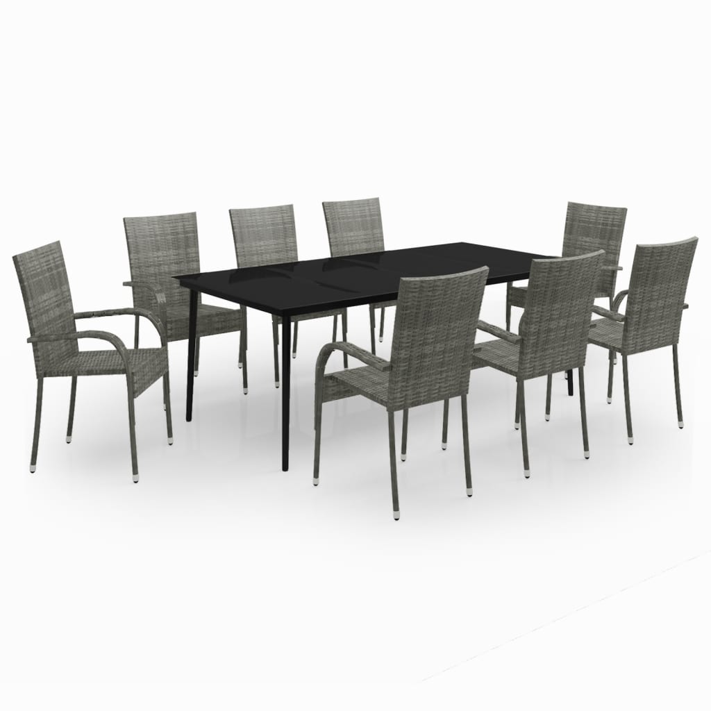 This garden dining set is a great choice for dining or relaxing in the outdoor space! The powder-coated steel frames make the table and chairs sturdy and stable for daily outdoor use. Thanks to the water-resistant PE rattan, the chairs are easy to clean and suitable for daily use. The smooth glass tabletop is easy to clean with a damp cloth and perfect for placing meals, drinks and other decorative items. Note: In order to extend the life of your outdoor furniture, we recommend you to clean it regularly and do not leave it outdoors without protection unnecessarily.Clean: Use a mild soap solution.Storing: If possible, store in a cool, dry place indoors. If the product is stored outdoors, protect it with a waterproof cover. Wipe and dry the excess water or snow from flat surfaces after a rain or snowfall. Allow sufficient air circulation to avoid moisture-related damage.