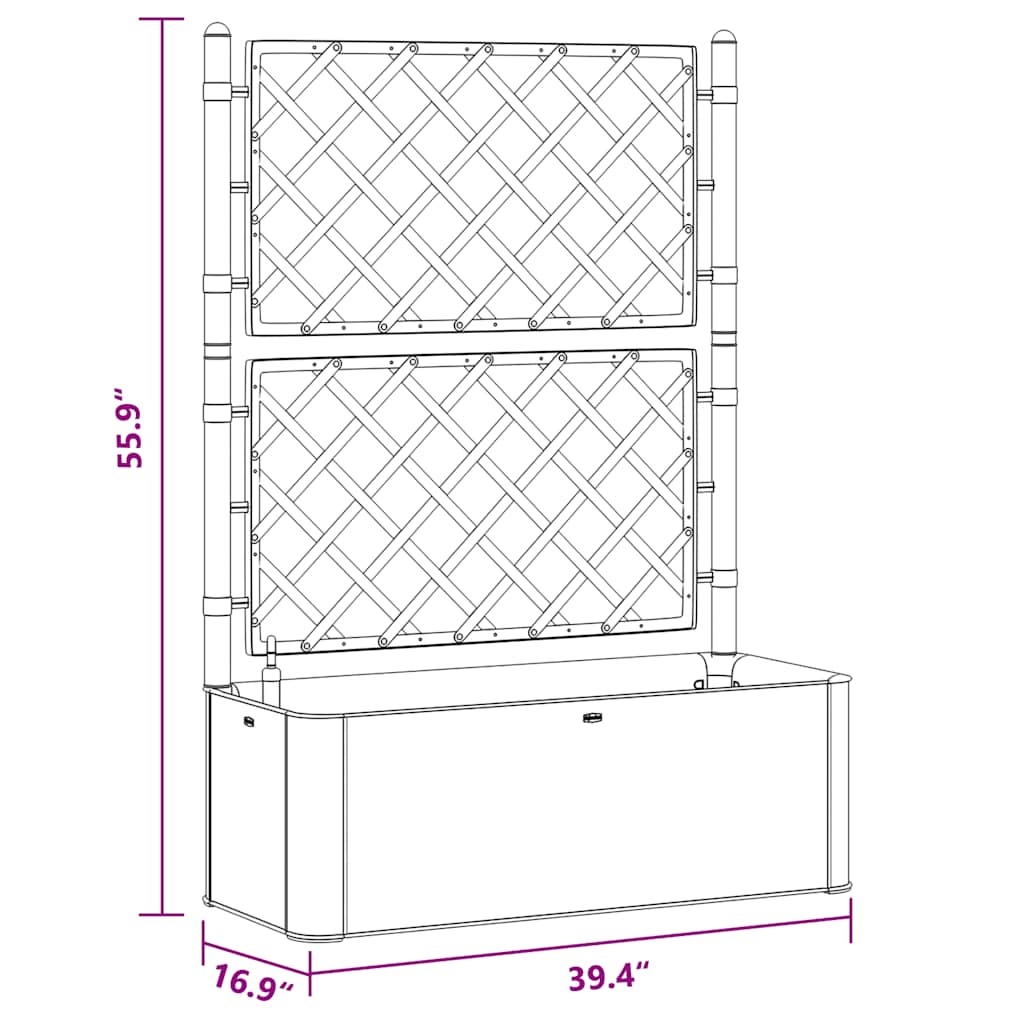 Create a lovely backdrop for your flowers with an elegant, functional and unique self-watering raised bed! This trellis planter has a large flower box that can accommodate a large number of green plants and flowers. The built-in trellis offers excellent support for climbing plants, like herbs, tomatoes, beans, etc. Made of robust UV, weather and frost-resistant plastic, it is suitable for indoor and outdoor use. The design resembles a deceptively real rattan structure. The material is washable and easy to clean. Additionally, this box can automatically water plants by wicking moisture from its 90 L water reservoir and has water overflow holes to prevent overwatering. The level indicator is included.