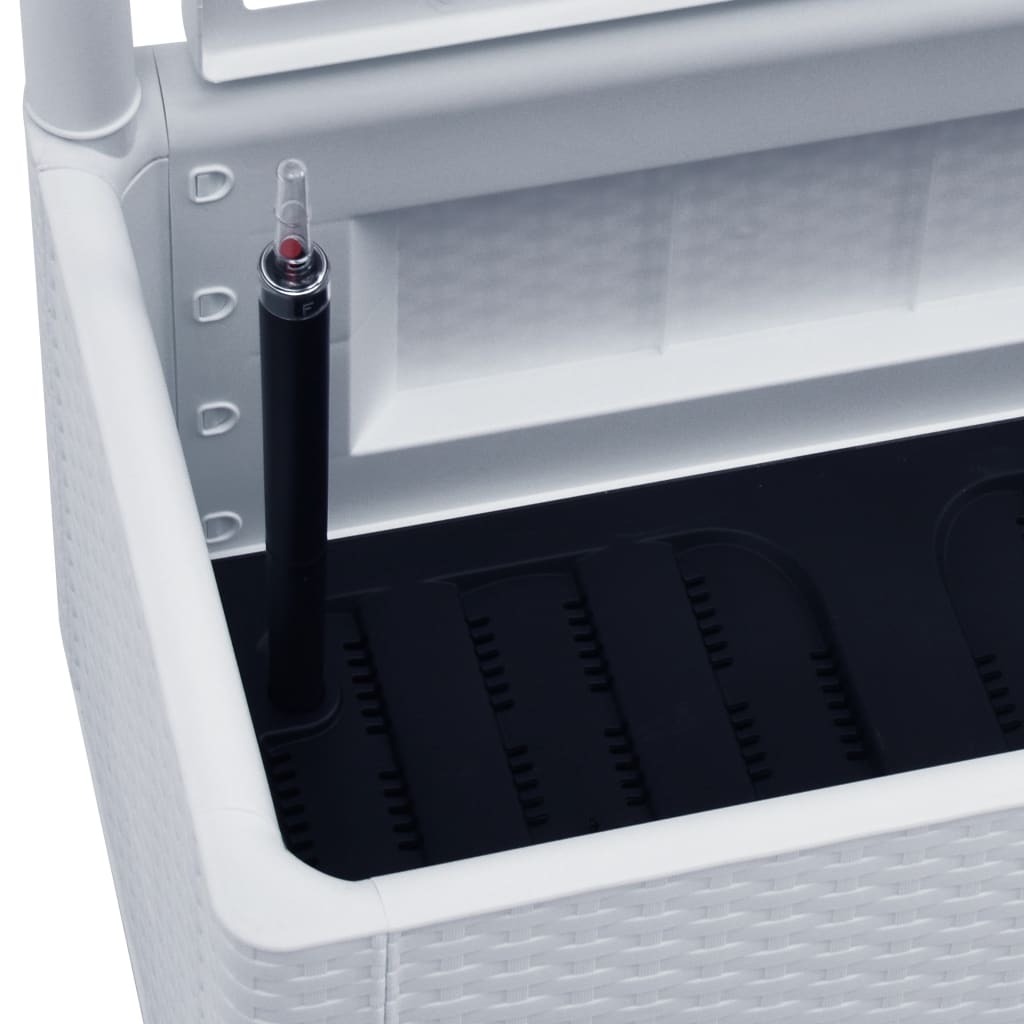 Create a lovely backdrop for your flowers with an elegant, functional and unique self-watering raised bed! This trellis planter has a large flower box that can accommodate a large number of green plants and flowers. The built-in trellis offers excellent support for climbing plants, like herbs, tomatoes, beans, etc. Made of robust UV, weather and frost-resistant plastic, it is suitable for indoor and outdoor use. The design resembles a deceptively real rattan structure. The material is washable and easy to clean. Additionally, this box can automatically water plants by wicking moisture from its 90 L water reservoir and has water overflow holes to prevent overwatering. The level indicator is included.