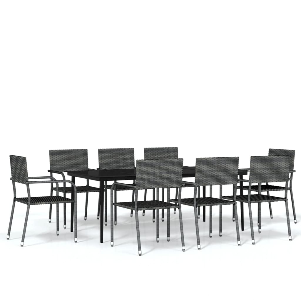 Enjoy a nice meal or afternoon tea in your outdoor space with this garden dining set! Featuring an elegant design, it will become the focal point of your garden and patio! The practical outdoor dining set has a steel frame, making it strong and sturdy. The garden chairs are made of water-resistant and maintenance-free PE rattan, making them perfect for outdoor use. Meanwhile, these outdoor chairs are lightweight and can be stacked to save space when not in use. In addition, the smooth glass tabletop is easy to clean with a damp cloth and excellent for placing meals, drinks and other decorative items. Note: In order to extend the life of your outdoor furniture, we recommend you to clean it regularly and do not leave it outdoors without protection unnecessarily.Clean: Use a mild soap solution.Storing: If possible, store in a cool, dry place indoors. If the product is stored outdoors, protect it with a waterproof cover. Wipe and dry the excess water or snow from flat surfaces after a rain or snowfall. Allow sufficient air circulation to avoid moisture-related damage.