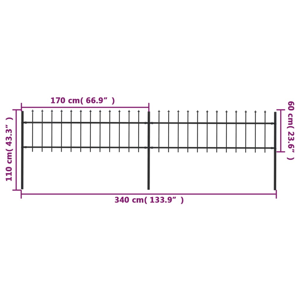 Garden Fence with Spear Top Steel 3.4x0.6 m Black – Modernique