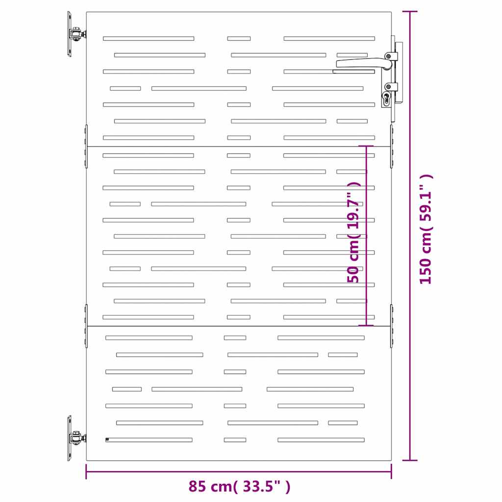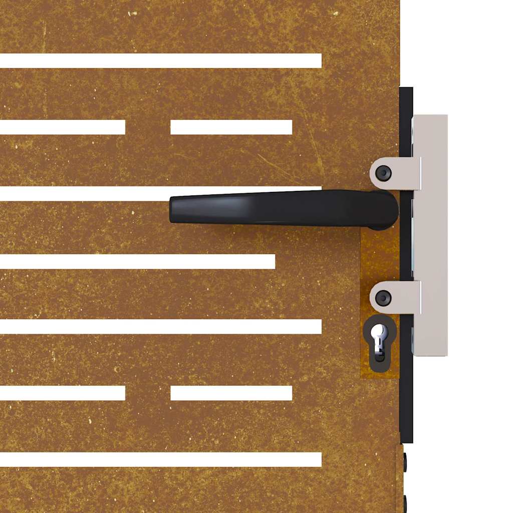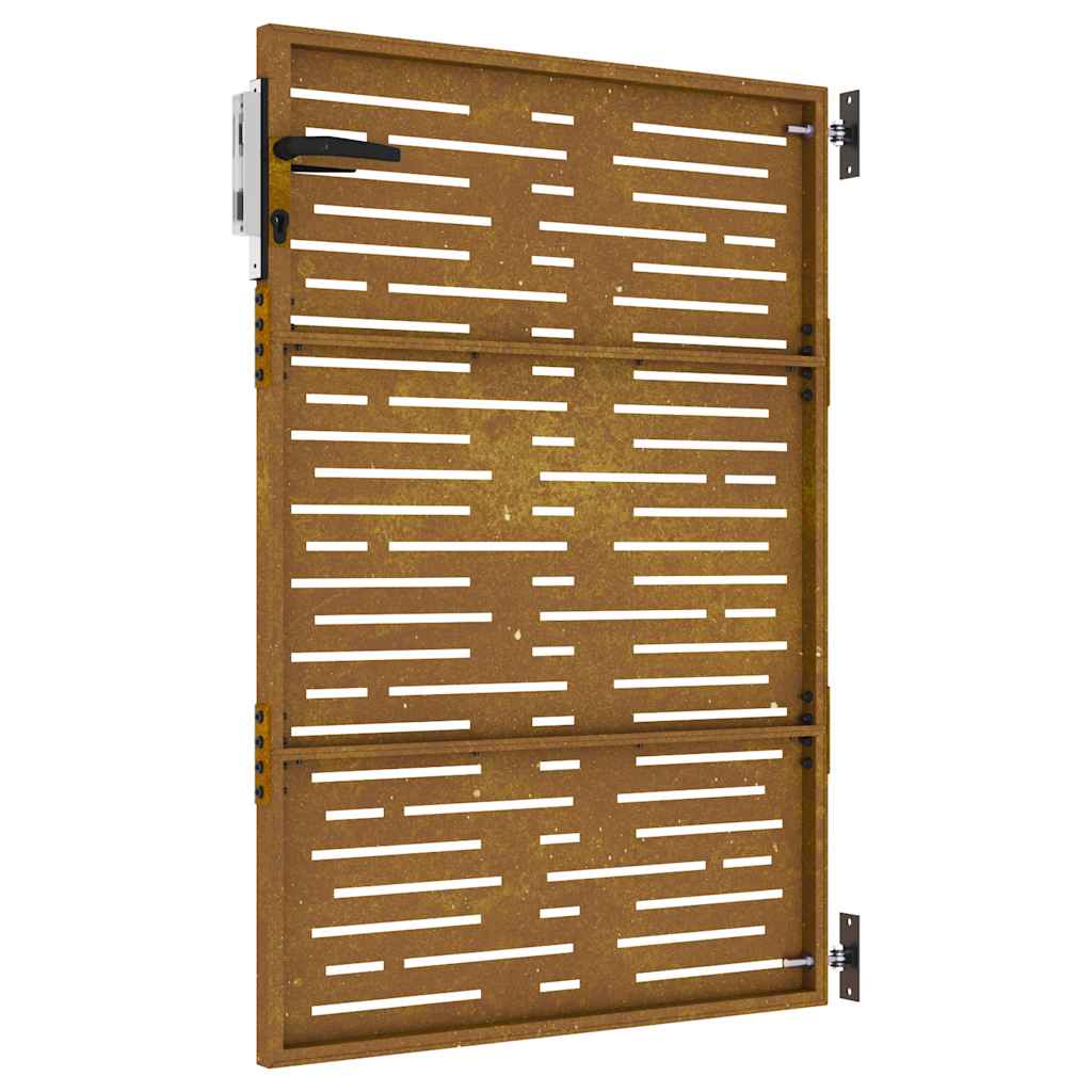 This garden gate, featuring a perfect combination of strength and elegance, makes an ideal entry point for the fence around your garden or patio. Durable material: The metal gate is made of corten steel. Corten steel, also known as weathering steel. This is anti-corrosive by its very nature. It develops a rusty protective layer against corrosion when first exposed to atmospheric conditions. Thus, you don't need to paint it. This can help you save on maintenance and repair costs. The distinctive brown colour on the corten steel will surely be an eye-catcher. Finally, weathering steel is exceptionally durable and will stand up to the test of time. Laser-cut design: The side gate has a beautiful laser-cut design that adds a special charm to your home.Lockable system: The steel gate is equipped with a lockable system for extra security. Good to know:This product should be assembled. The gate frame and posts are not included in the delivery.This product is not rusted yet and has a normal metal colour when you receive it, but rust will develop over time. You could speed up the rusting process by spraying it with soap water and salt water. To keep your clothes stain-free, avoid contact with the developing rust layer.