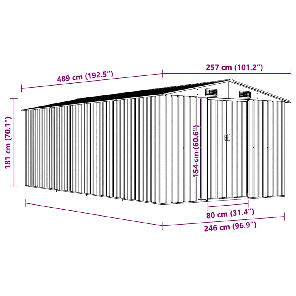 Our metal storage shed will be perfect for storing a wide variety of tools, garden furniture and garden equipment. The garden shed does not only offer protection from dirt and dust but also against wind and weather. This storage house has vents both in the front and back, ensuring excellent ventilation. Its double sliding doors in the front allow easy entry and exit. Thanks to the galvanised steel construction along with a powder-coated finish, the tool storage shed is durable and strong. The outdoor storage house needs assembly.