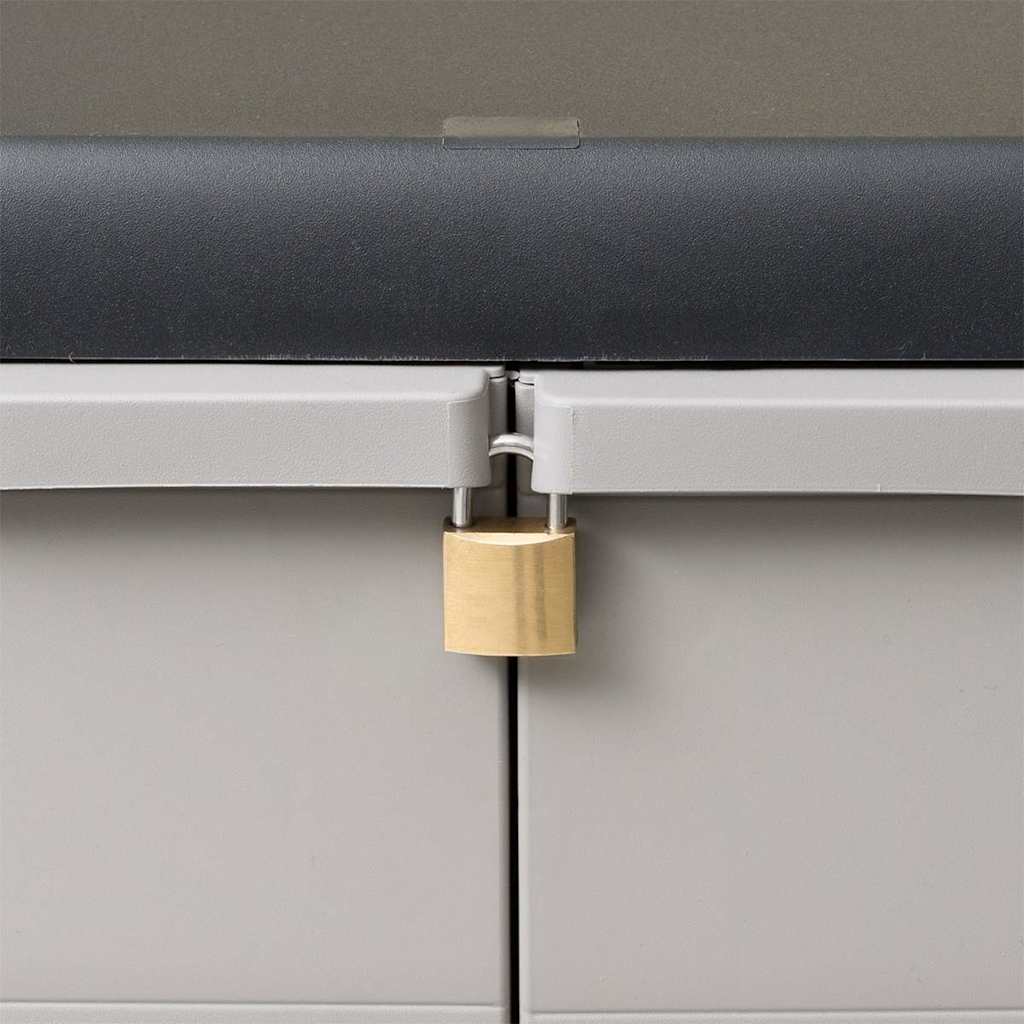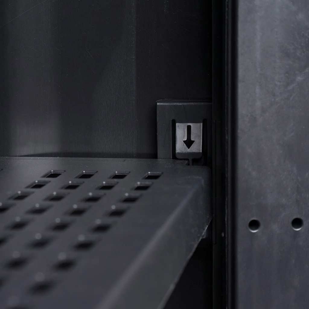 Our high-quality storage cabinet is ideal for organising and storing your household supplies, tools or other items in the garden or on the patio, etc. This cabinet will blend into any decor with its timeless design. This TÜV-GS certified cabinet is made of sturdy, durable polypropylene (PP). The storage cabinet has a ventilated shelf which can be adjusted to accommodate items of different sizes. The garden cabinet can be locked with a padlock for added safety (the lock is not included). This outdoor storage cabinet is very easy to clean. The garden cabinet has a compact design and will make the most use of limited space. Assembly is easy.