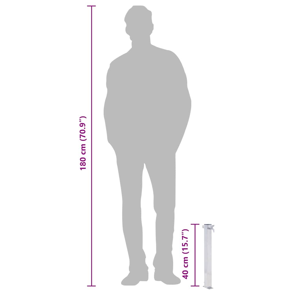 This garden water column together with the faucet is a great addition to your garden while making outdoor watering, washing, or irrigation more convenient. Durable material: The garden water column is made of stainless steel, which is sturdy and durable for long-term use. It also has good resistance to corrosion and rust.Practical hook: The standing faucet is designed with a hook for hanging the hose to deal with hose curling, kinking, and tangling. It has enough height to keep the hose away from the ground which keeps your yard clean and tidy.Stable base: The stainless steel base brings sturdiness and firmness to the faucet column. You can find the expansion screws to fix the column in the ground to add extra stability.Versatility use: The water hose can be attached to the bottom connector to let the water in. The garden faucet is suitable for garden irrigation, car washing, outdoor watering, pet showering, and so on. Good to know:The expansion screw is not included.