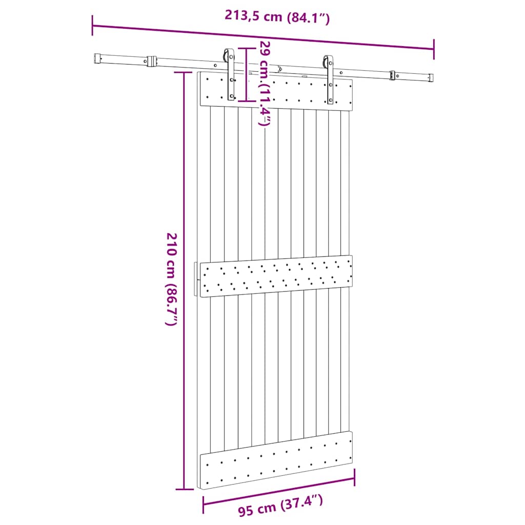 Sliding Door with Hardware Set 95x210 cm Solid Wood Pine – Modernique