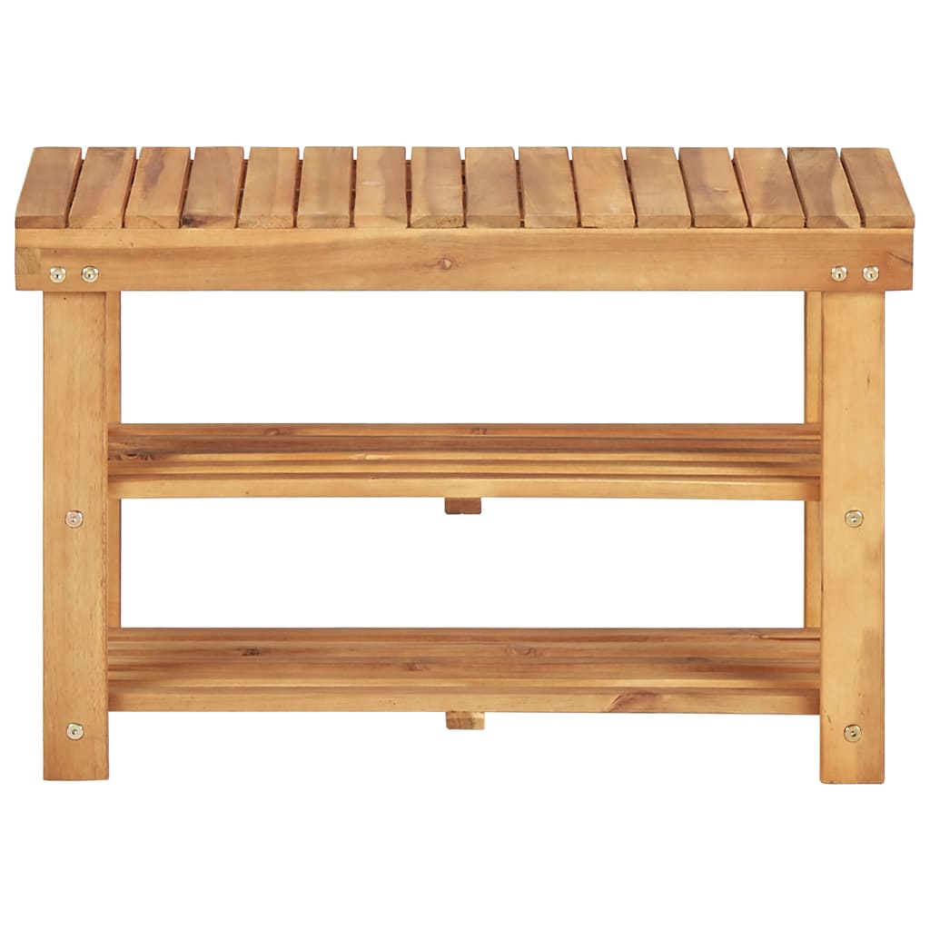 This compact wooden shoe rack is perfect to keep your footwear organised and arranged for easy retrieval. The natural wood colour will add some rustic flair to your decor. Made of premium acacia wood, the shoe rack is characterised by excellent durability. Additionally, the top is sturdy enough to bear your weight while sitting and changing shoes, which makes the shoe shelf stands out with its outstanding functionality. You can also use it as a bench. The shoe cabinet is easy to assemble. It is easy to wipe clean with a damp cloth.