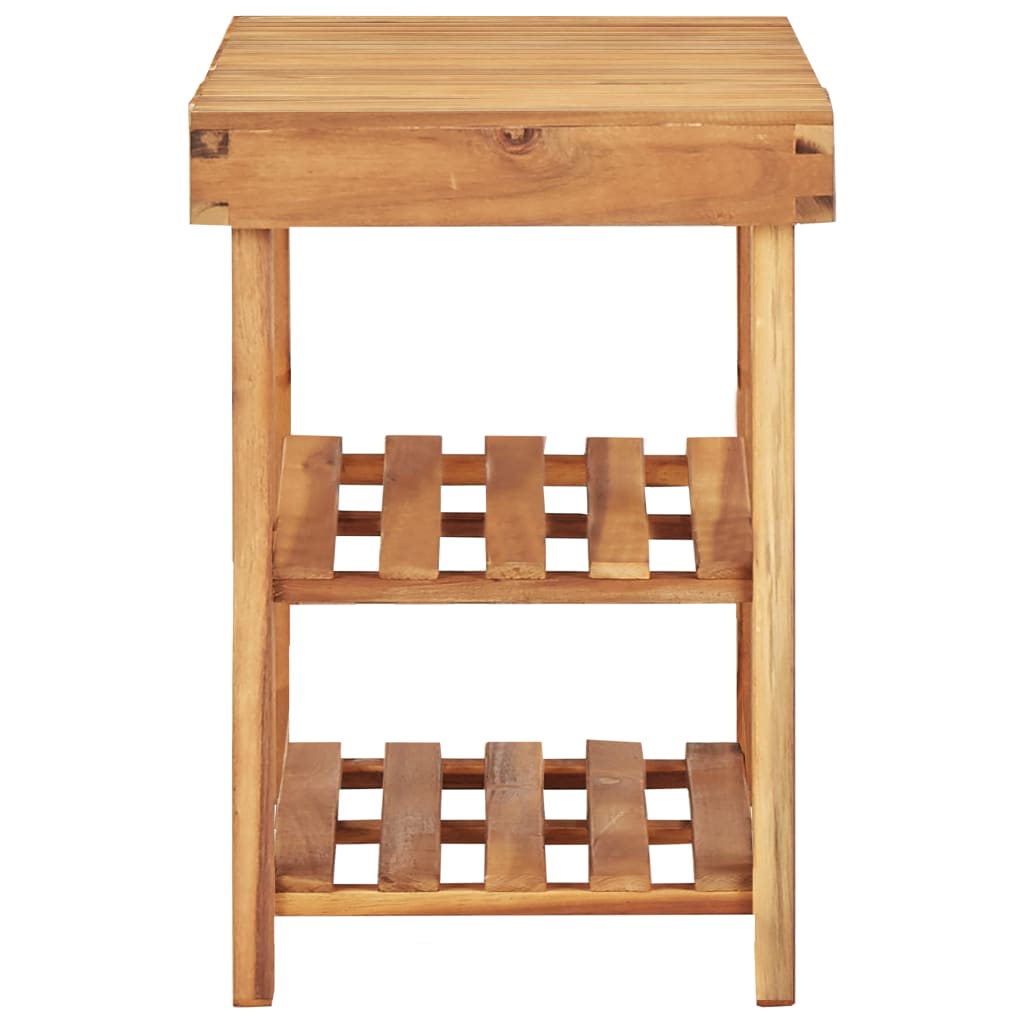 This compact wooden shoe rack is perfect to keep your footwear organised and arranged for easy retrieval. The natural wood colour will add some rustic flair to your decor. Made of premium acacia wood, the shoe rack is characterised by excellent durability. The 2 shelves are of difference sizes, makes it possible for you to arrange your boots and high heels. Additionally, the top is sturdy enough to bear your weight while sitting and changing shoes, which makes the shoe shelf stands out with its outstanding functionality. You can also use it as a bench. The shoe cabinet is easy to assemble. It is easy to wipe clean with a damp cloth.