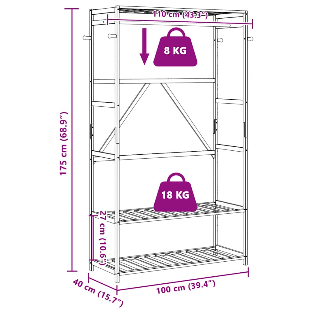 The bamboo clothes rack provides a natural solution for organising your space, combining practical design with sturdy functionality. Stable and durable: Bamboo is lightweight, water-resistant, and strong, making it a great choice for various applications, including furniture, construction, crafts, and decorative items.Ample storage: The coat rack features the hanging rod for organising your clothes, ensuring everything is within easy reach. The shelves are ideal for storing boxes and folded garments, while the lower shelf provides space for shoes. Additionally, side hooks provide a convenient place to hang your handbags and hats.Versatile use: The clothes rack adapts to various spaces, whether in the bathroom as a towel rack, in the hallway as a coat stand, or in the bedroom or dressing room as a clothes rail, bag holder, and more.Easy to maintain: The bamboo clothes rack is easy to clean with a damp cloth and requires less maintenance.