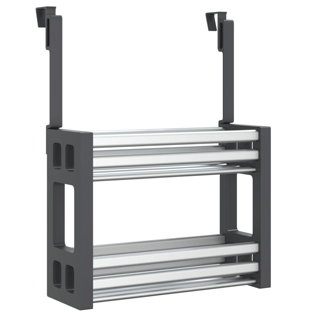This under sink organiser is ideal for storing and organising cleaning products and detergents while saving space inside kitchen cabinets. Sturdy material: Aluminium metal is lightweight and strong. It's resistant to corrosion with a self-protecting oxide layer. Made of aluminium, this undersink organiser is built to last for years.Ample storage space: With 2-tier shelves, this spice cupboard organiser provides plenty of storage space for keeping your kitchen supplies well-organised.Easy to dry: The ventilated design of the basket is better for drying and can avoid the annoying accumulation of water.Easy to fit: The under sink organiser is no drilling required and easy to install. Simply hang it over the door to create extra storage space.Wide application: The under sink storage organiser is perfect for hanging over the cabinet door in the kitchen or bathroom, pantry door and other spaces in the home.