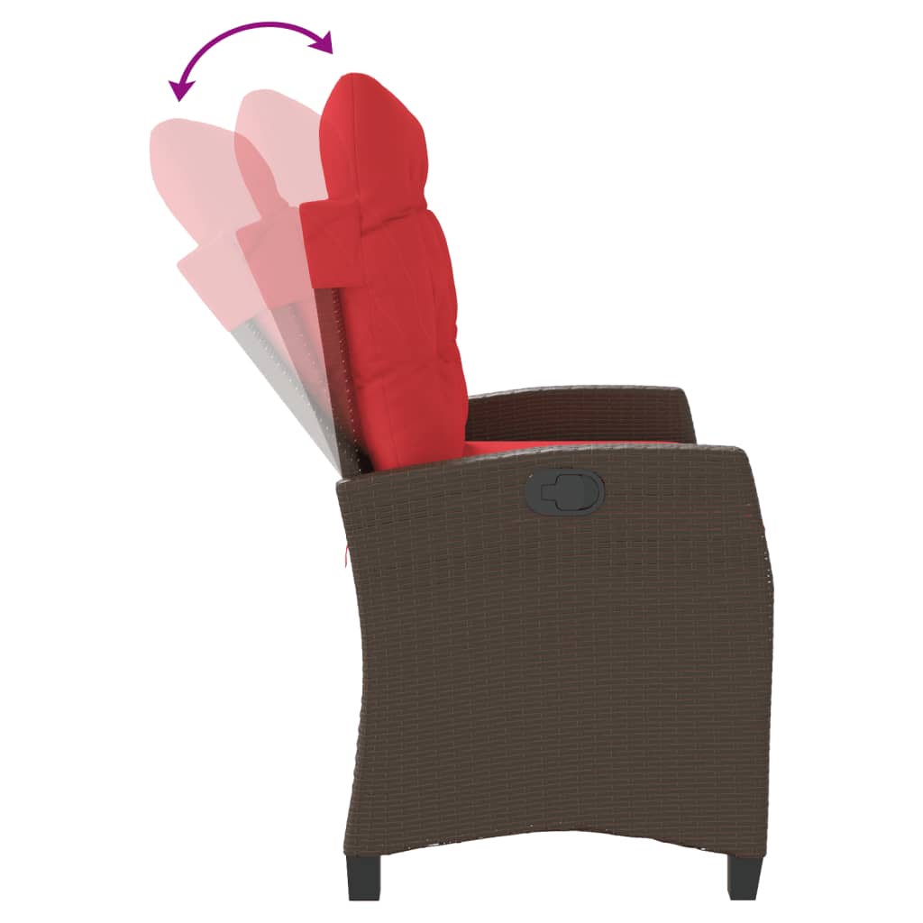 Relax and enjoy the outdoors in this comfortable reclining garden bench! Durable material: PE rattan, also known as poly rattan, is a strong, low-maintenance synthetic material that looks like natural rattan. It's lightweight, easy to clean, and commonly used for outdoor furniture due to its durability and weather-resistant properties. Adjustable backrest: This garden seat has handles. You can adjust the backrest to any position by pulling the handle, and quickly return it to its original position. Comfortable seat experience: This outdoor furniture, complete with thickly padded cushions, offers a comfortable seating experience. Removable and washable cover: These seat cushions feature removable covers for easy washing and maintenance. The back cushions have a flap at the back for easy attachment to the backrests.Robust and stable frame: The powder-coated steel frame ensures that the garden furniture is strong and stable for daily outdoor use. Good to know:To make sure your outdoor furniture stays beautiful, we recommend protecting it with a waterproof cover.