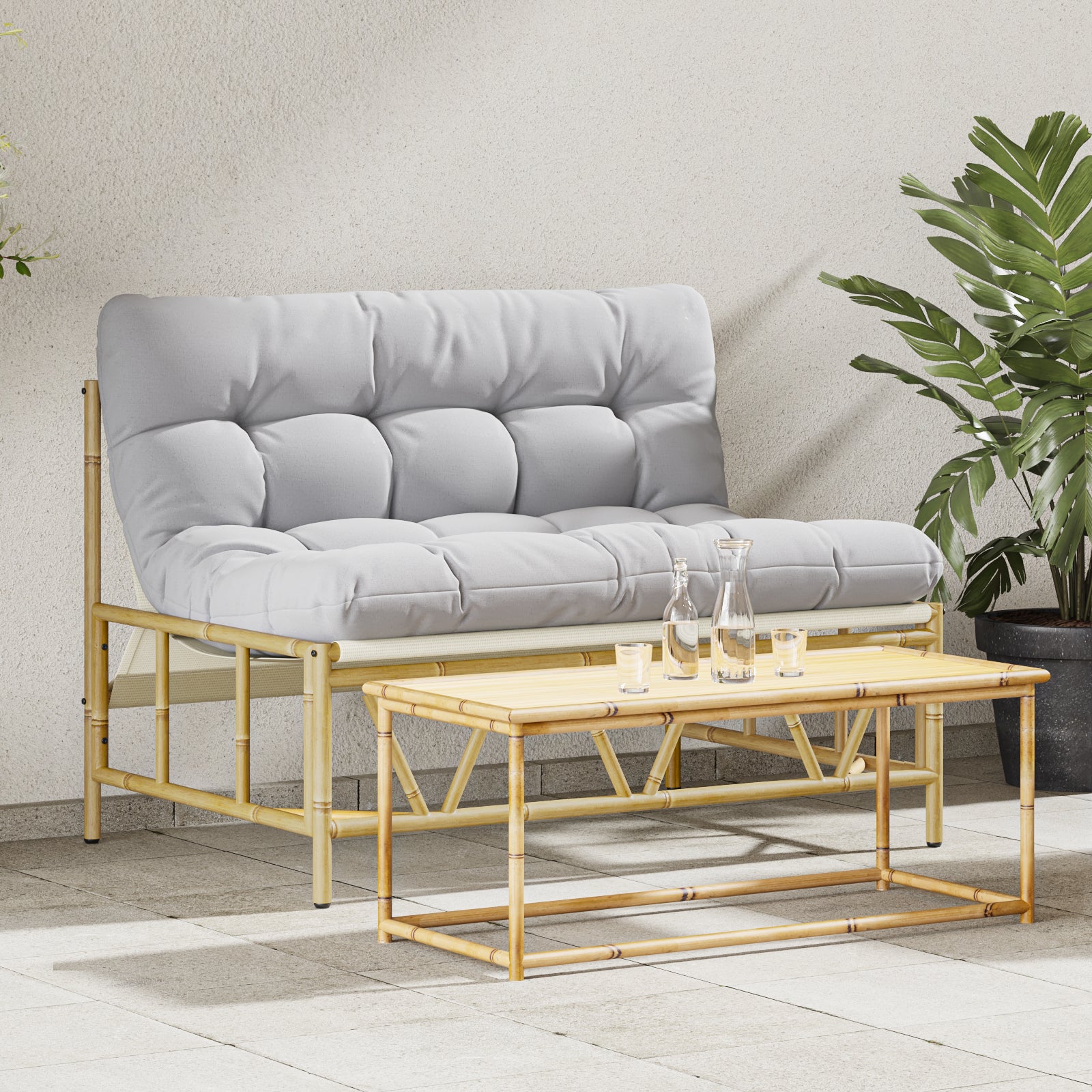 This vidaXL Garden Bench mixes fancy style with comfy practicality, ideal for outdoor spots like patios and balconies. Made from tough bamboo and polyester, it comes with a soft cushion for max chill, while also looking great in your garden. Ultimate Comfort: The thick, soft cushion supports you, making it brilliant for lounging outside for ages. Modern Design: This rectangular bench brightens your outdoor decor with its stylish look, making it a nice focal point. Durable Materials: Made from UV-resistant bamboo fibre and polyester, this bench will last through tough weather. Space-Saving Design: With measurements of 75 cm wide, 110 cm long, and 71 cm high, this bench's great for both small and large outdoor spaces. Perfect for Outdoors: Built for patios or gardens, this bench gives strong and reliable seating for two people.