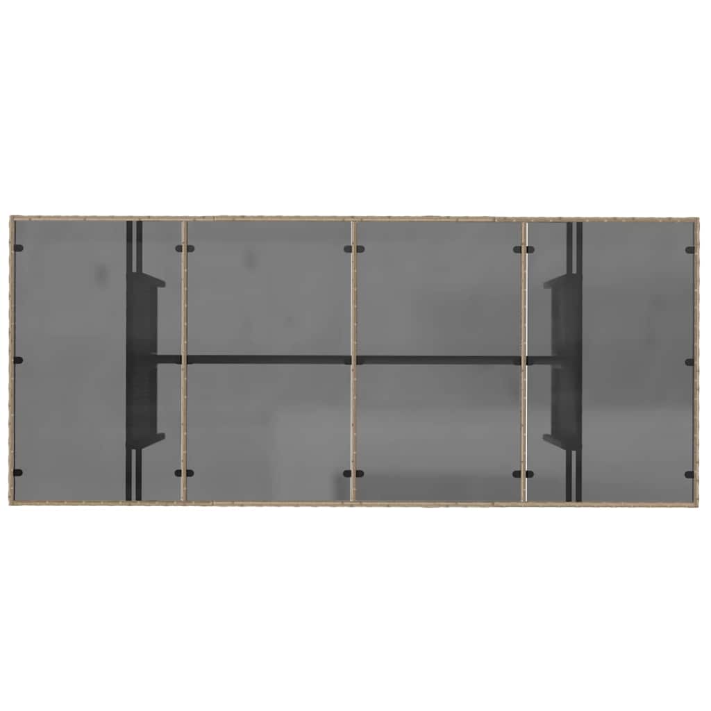 This Modern Garden Dining Set is all about stepping up your outdoor area with its sleek style and practical use. The rectangular table and matching chairs give off a clean, minimalist vibe that fits right into different garden or terrace setups. With its straightforward design, this set is perfect for hanging out outdoors, be it for a fun family breakfast or a calm evening dinner. Poly Rattan Elegance The set features poly rattan as its main material, making it a smart choice for your outdoor area. It’s weather-resistant, so the set looks good all year round. Plus, its stylish weave gives it a contemporary flair that stands out in any garden. Tempered Glass Surface The tempered glass top adds a classy touch and is practical too. It’s easy to clean and stays clear for ages. This tough material resists scratches and can handle heat, making it perfect for all kinds of outdoor dining. Sturdy Steel Frame The robust steel frame is at the core of the set’s durability. It’s built for strength and stability, supporting the weight of the table and chairs to prevent tipping over. This solid design ensures you and your mates can enjoy every moment comfortably and safely. Practical Use Features With its rectangular shape, this set is ideal for outdoor dining. It fits nicely on patios and decks. The flat armrests add comfort, while the minimalist design suits modern tastes. Easy Maintenance To keep it looking good, it's best to cover it when you’re not using it. A quick wipe-down will keep it in shape, while the glass surface makes cleaning a piece of cake, so your outdoor gatherings can stay pristine.