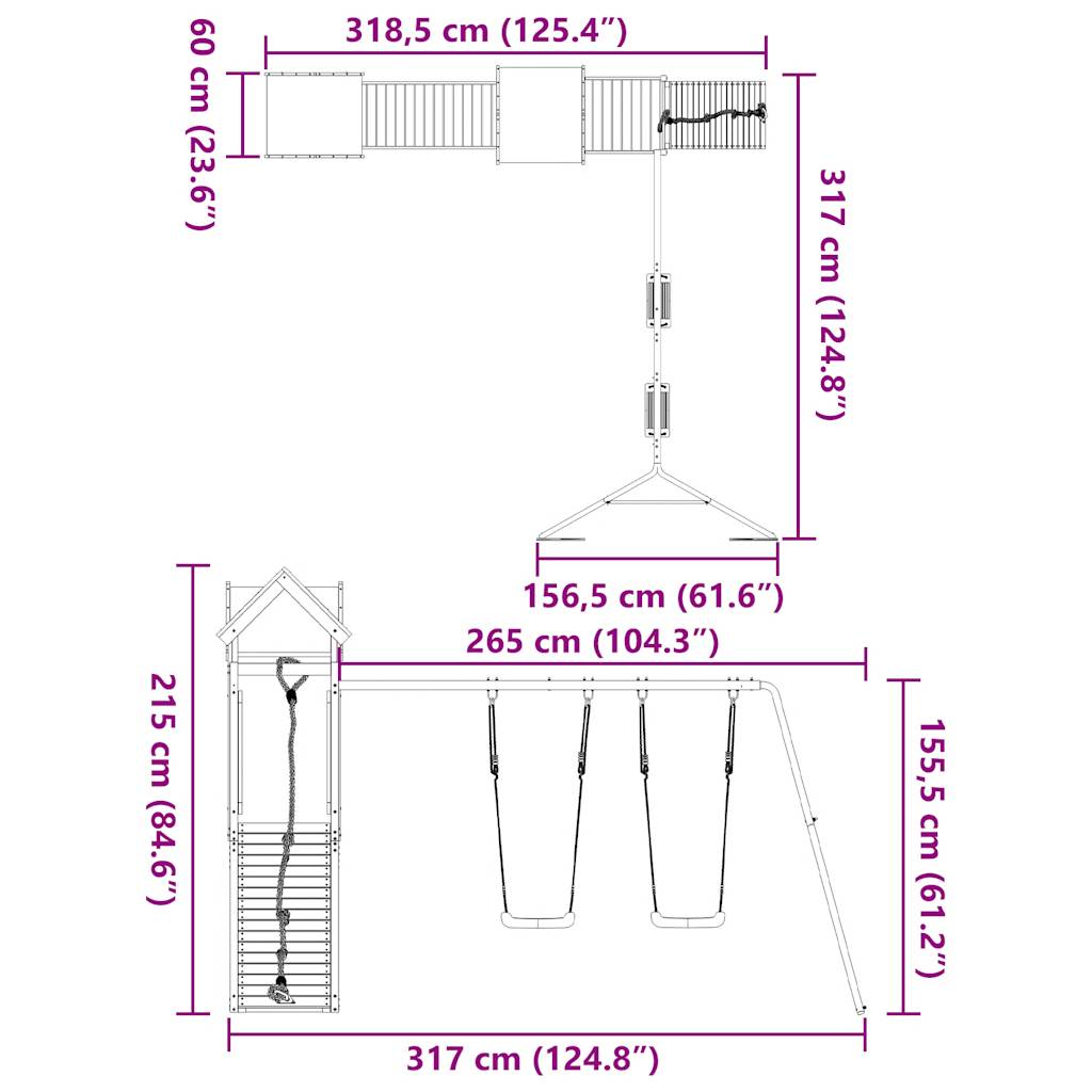 - Play tower material: Vacuum pressure impregnated pinewood