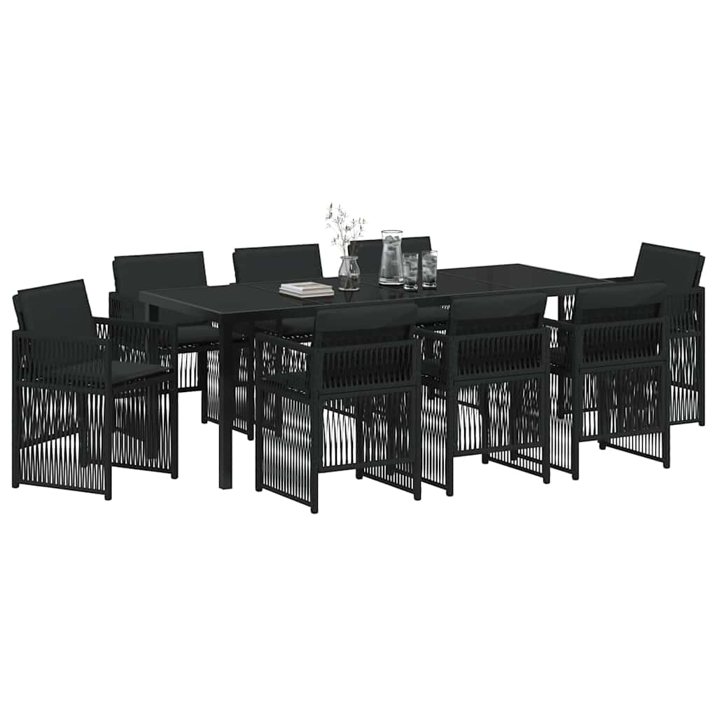 This Modern Garden Dining Set with Cushions is a stylish and flexible piece for your outdoor area. It's got a simple yet functional design with sleek lines that really fits the vibe of any garden or patio. Whether you're having dinner with friends outside or just enjoying a sunny breakfast, this set makes your outdoor space feel more inviting and comfortable with its smart poly rattan and tempered glass table. Materials: This dining set is mainly made from poly rattan, giving it both durability and a nice look—perfect for outdoors. The steel bits add strength and stability, so it's ready for regular use and all sorts of weather. Included Components: You’ll find a rectangular table with a tempered glass top that’s easy to clean, alongside some comfy poly rattan chairs. Each chair has foam-padded cushions with zippers, making them comfy and easy to care for. Features / Function / Design: The chairs are collapsible, making them easy to store. The simple manual mechanism lets you fold things up quickly, adapting the setup as you like—a brilliant space-saver for outdoor areas. Recommended Uses: Perfect for garden or terrace gatherings, this set creates a warm atmosphere for summer meals and parties. Its straightforward design means it fits in easily with different outdoor layouts. Care & Maintenance: To keep it looking good, pop a cover on the set when you're not using it. The tempered glass surface is easy to wipe down, helping keep it clean.