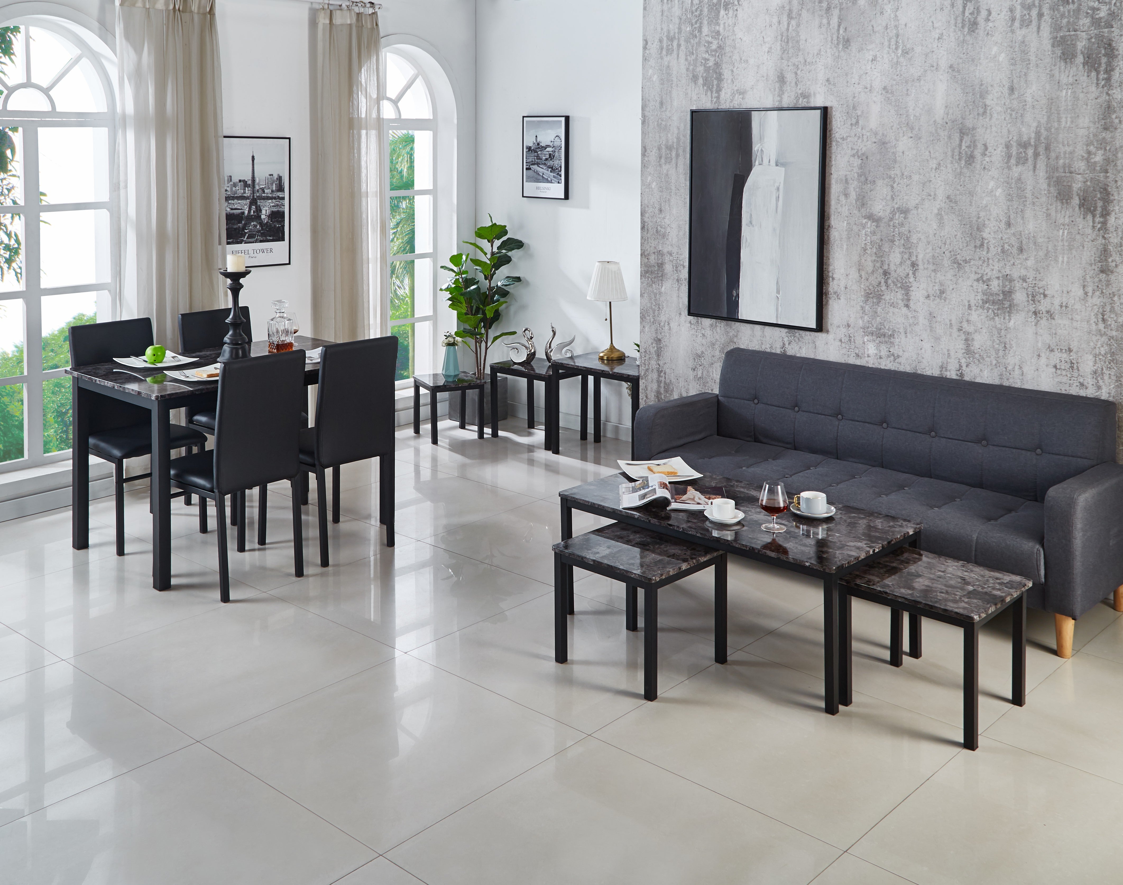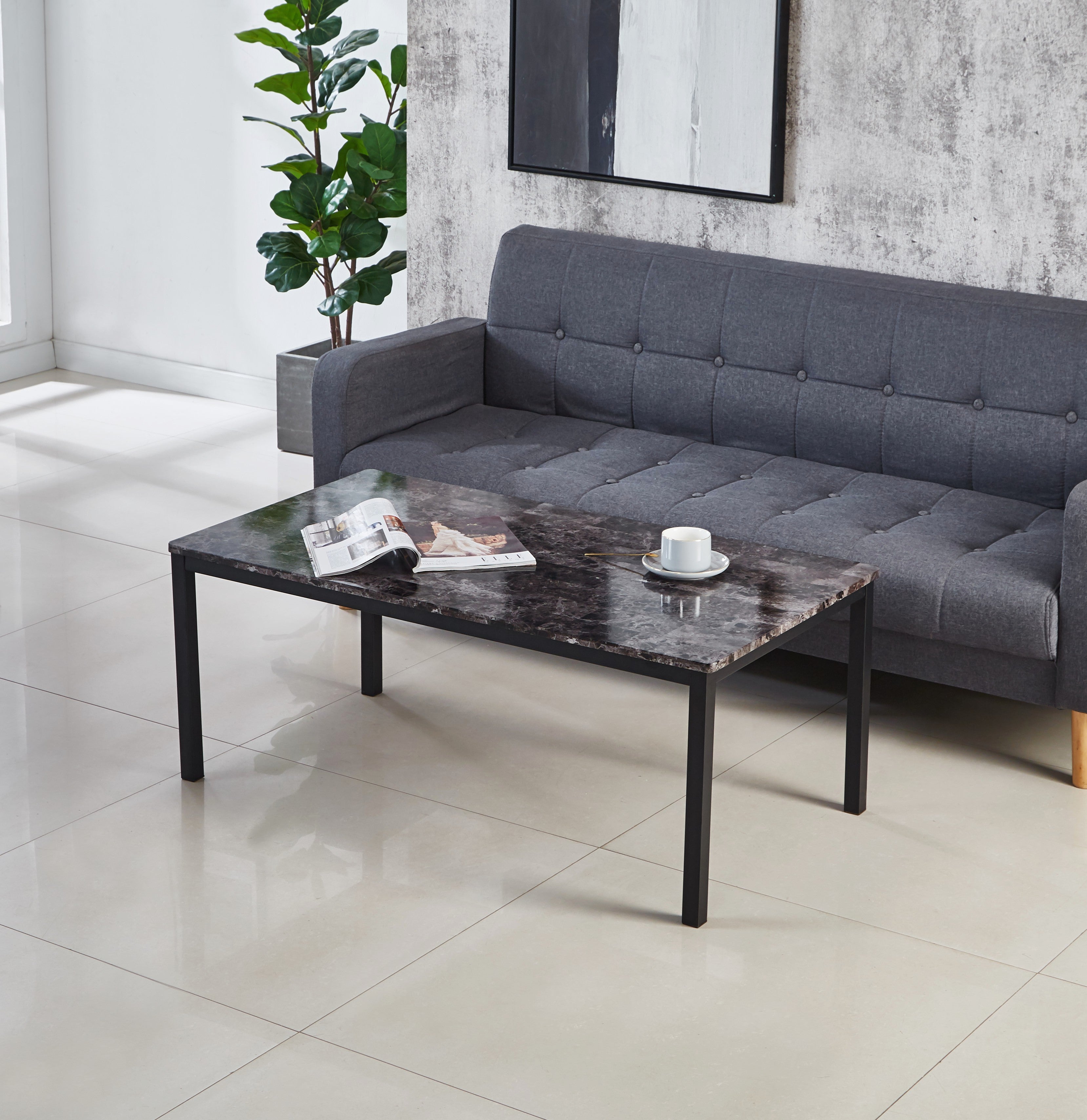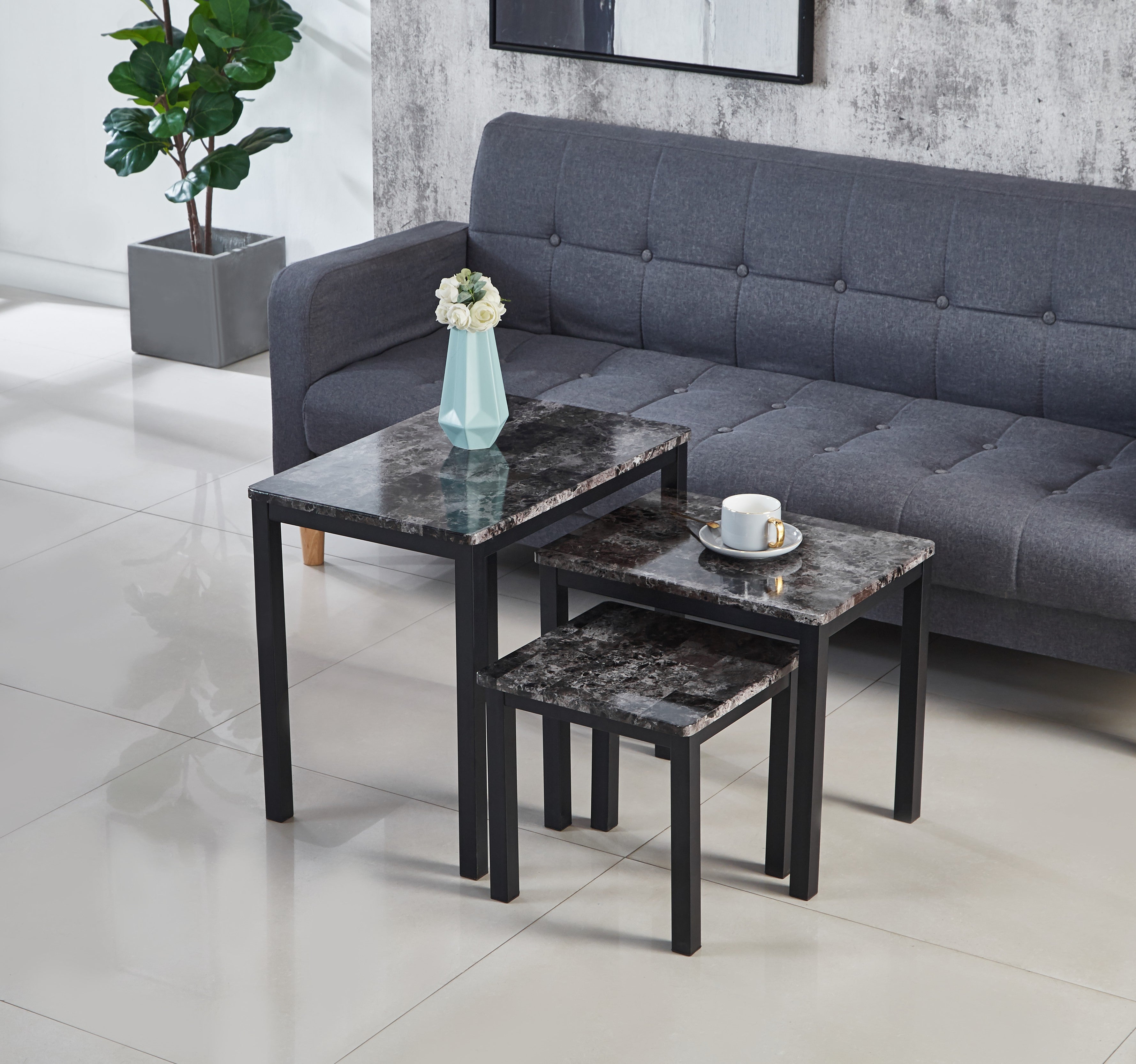MDF Marble Effect Emillia Coffee Table, Coffee Table with 2 Side Tables & Nest of 3 Tables Set, Available in Black Brown & Grey, Black Metal Frame.