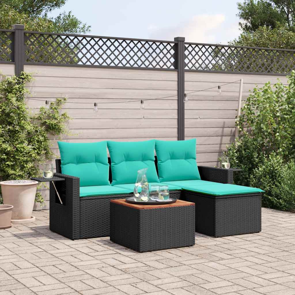 This garden sofa set is the perfect addition to your backyard, terrace, or patio, providing a comfortable and inviting space for chatting with family and friends or simply relaxing and enjoying the outdoors. Durable material: PE rattan, also known as poly rattan, is a strong, low-maintenance synthetic material that looks like natural rattan. It's lightweight, easy to clean, and commonly used for outdoor furniture due to its durability and weather-resistant properties.Convenient side table: This outdoor furniture features a foldable side table with a gas spring on the armrests, providing a convenient spot to keep your essentials within easy reach.Stable and easy-to-clean tabletop: This garden table has an acacia wood top that is sturdy, durable, and easy to clean with a damp cloth.Removable and washable cover: These seat cushions feature removable covers for easy washing and maintenance.Modular design: This outdoor furniture set has a modular design, making it completely flexible and easy to move around, so you can create a customised outdoor furniture arrangement. Good to know:To make sure your outdoor furniture stays beautiful, we recommend protecting it with a waterproof cover.