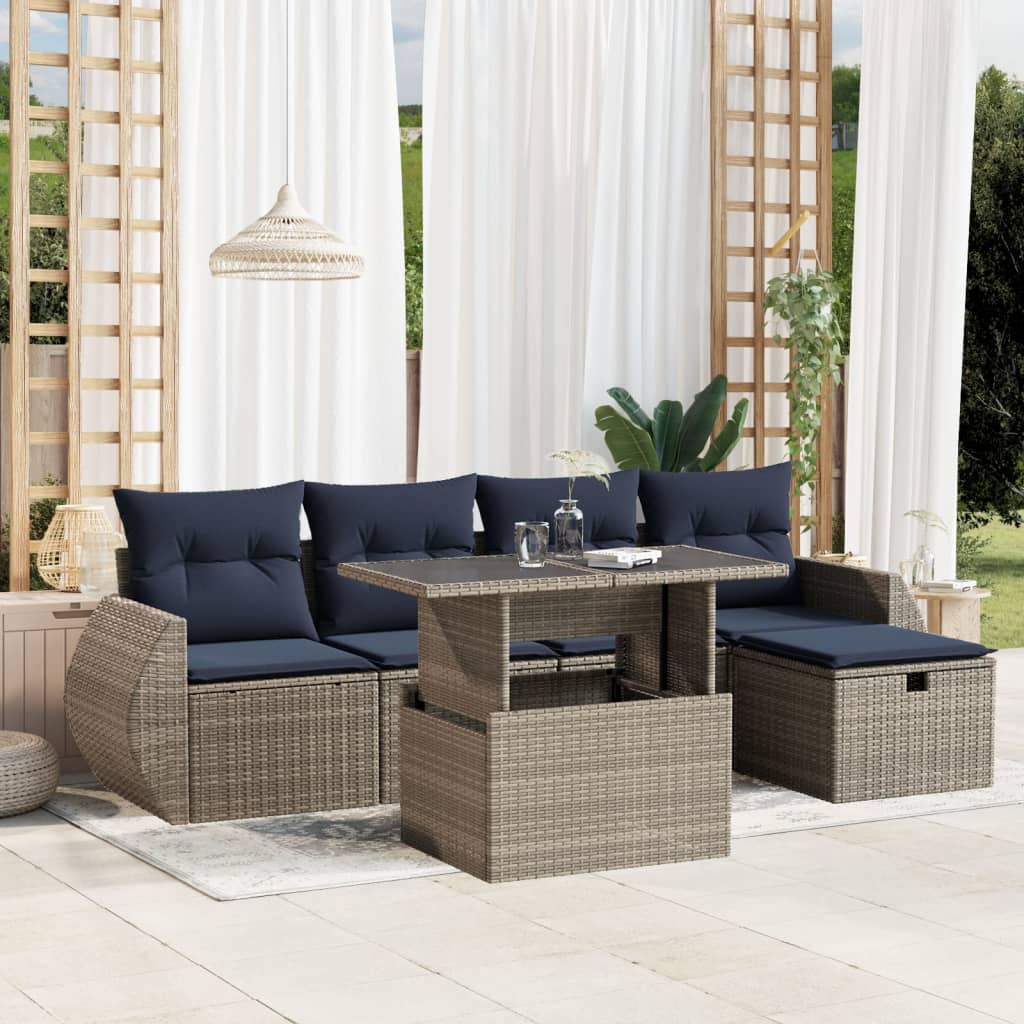 This garden sofa set is the perfect addition to your backyard, terrace, or patio, providing a comfortable and inviting space for chatting with family and friends or simply relaxing and enjoying the outdoors. Durable material: PE rattan, also known as poly rattan, is a strong, low-maintenance synthetic material that looks like natural rattan. It's lightweight, easy to clean, and commonly used for outdoor furniture due to its durability and weather-resistant properties.Adjustable tabletop: The tabletop can be lifted up to make the table higher, which transforms the outdoor table from a coffee table to a dining table. It's perfect for having guests over or eating meals outside.Glass tabletop: The outdoor table's top is made from strong and durable tempered glass, making it easy to clean with a damp cloth and adding a touch of elegance to your outdoor space.Removable and washable cover: These seat cushions feature removable covers for easy washing and maintenance.Modular design: This outdoor furniture set has a modular design, making it completely flexible and easy to move around, so you can create a customised outdoor furniture arrangement. Good to know:To make sure your outdoor furniture stays beautiful, we recommend protecting it with a waterproof cover.