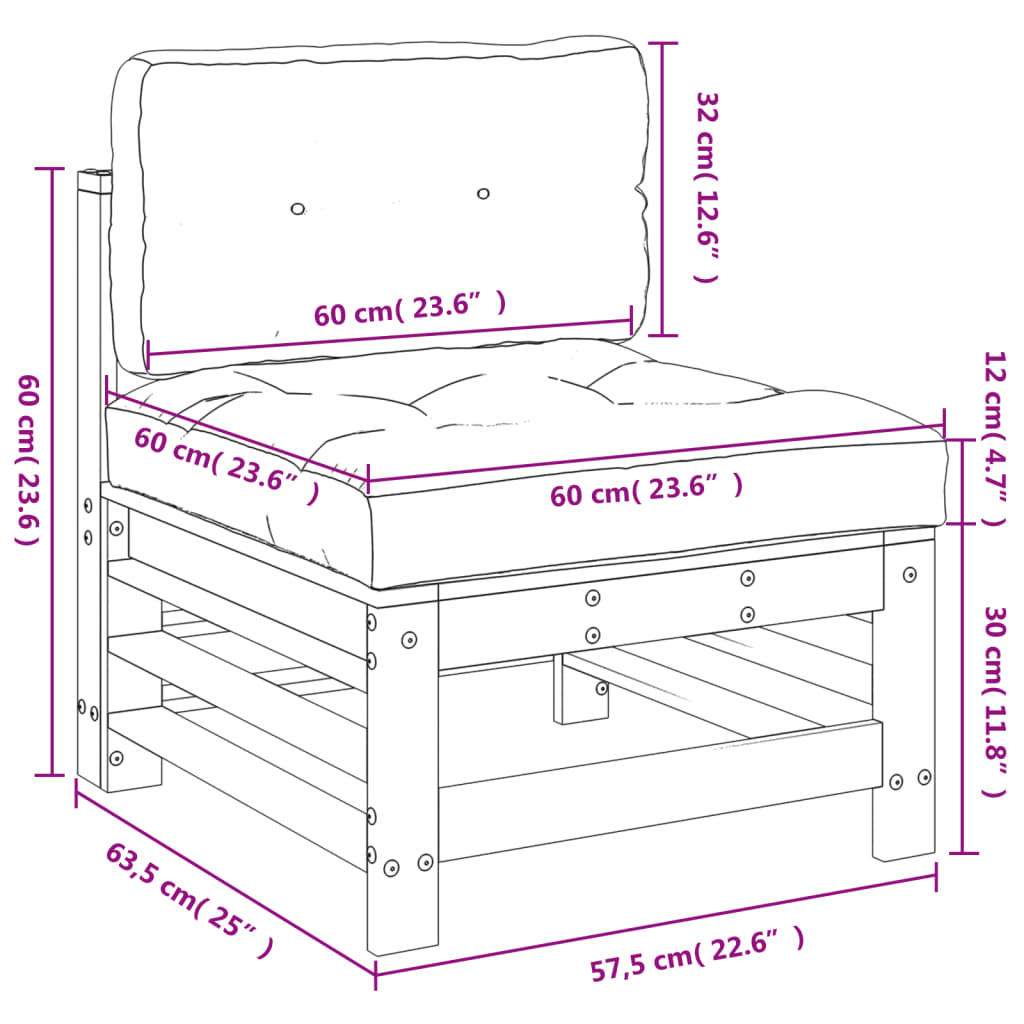 - Back cushion dimensions: 60 x 32 x 12 cm (L x W x T)