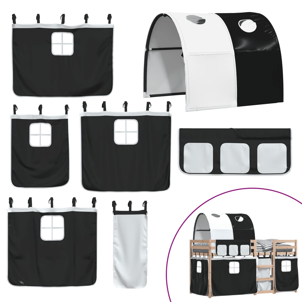 This wooden bunk bed is elegant and functional, making it a perfect addition to any room with limited space. Solid pine wood: This bunk bed is made of solid pine wood for stability and durability. Pine wood has a straight grain, and the knots give the material its signature, rustic look.Great fun: You can combine the curtains with the low bunk bed to create your child's secret base, providing great fun at bedtime and adding a focal point to the bedroom!Safety guardrails: The top bunk comes with safety guardrails on all 4 sides, so your child can sleep without worrying about falling off.Convenient ladder: This double bunk bed has a ladder that provides convenience for getting on and off the bed. It also brings joy and turns their room into an indoor playground. Good to know:A mattress is not included with this bed. We do offer a various selection of mattresses. You can check our shop for a matching mattress. Warning:To prevent it from tipping over, this product must be used with the provided wall attachment device.